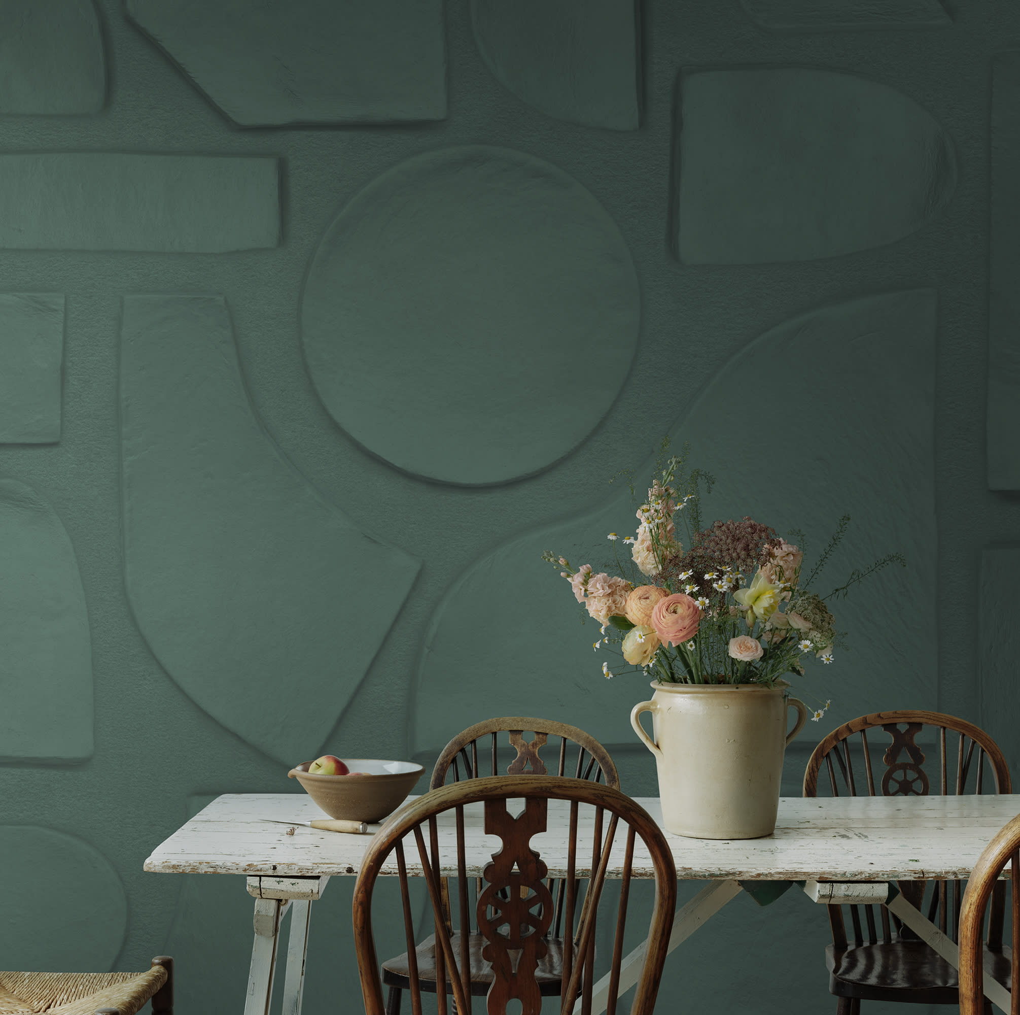 Acest tapet cool este realizat manual de către designerii noștri. Formele de lut creează un design artistic abstract, dezvăluind fiecare mic detaliu și conferind un sentiment autentic spațiului tău. Această piesă sofisticată este potrivită pentru orice locuință rebelă. Doar îndrăznește! Varianta Emerald vine într-o nuanță închisă verde smarald.