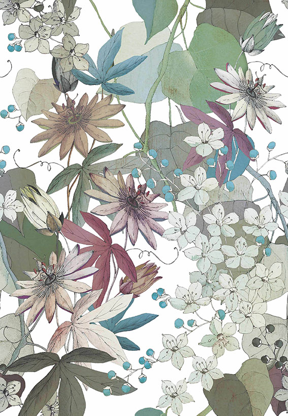 Clematis, Autumn Neutral Luxury Floral, 1838 Wallcoverings, 6.5mp / rola