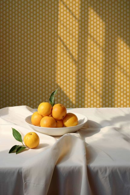 Tapetul Lin Ocre de la Coordonné este un design texturat în tonuri de galben/portocaliu din colecția Palette. Nuanțe calde de