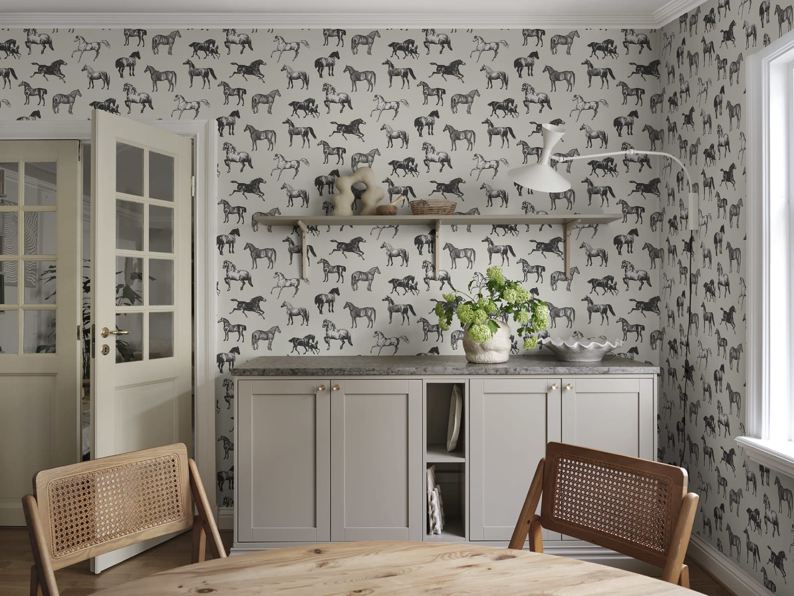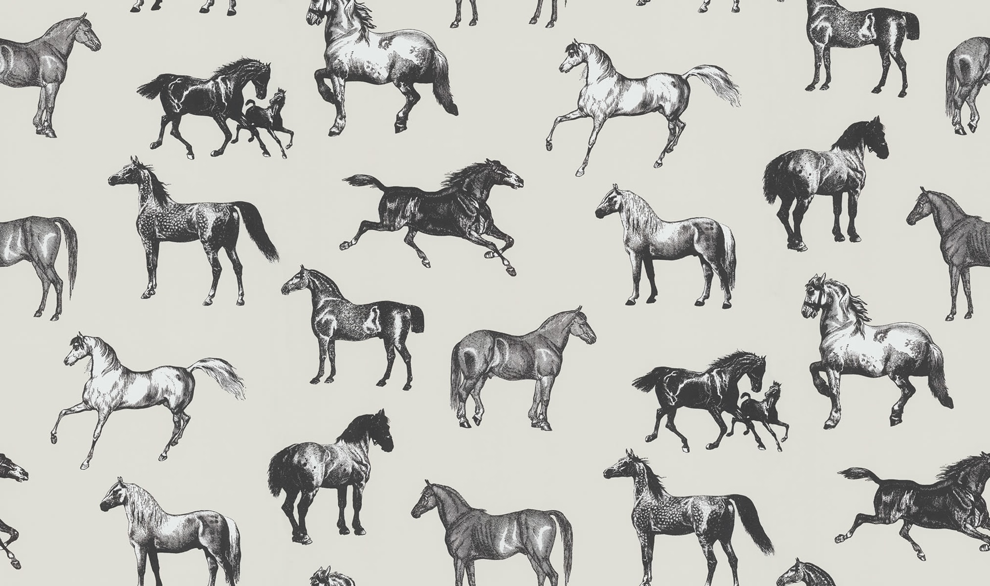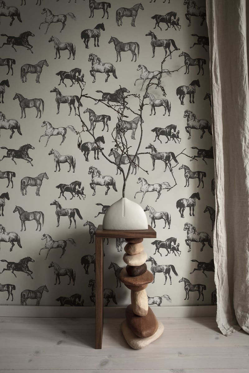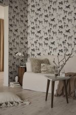Cai frumoși și grațioși împodobesc pereții în designul Colette. Detaliile mici și contrastul ridicat dau acestui tapet un aspect grafic potrivit atât pentru locuințele de vacanță, cât și pentru apartamentele din oraș. Varianta de culori Graphite are cai desenați în negru pe o bază bej.