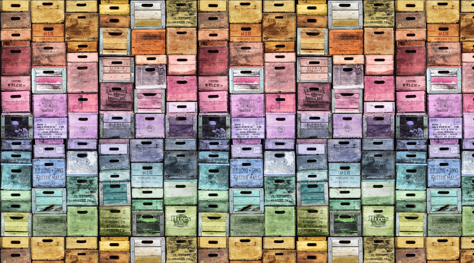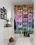 Fototapetele pot transforma dramatic o cameră și primul pas e acela de a fi mare și impunător. Acest fototapet cu cutii de lemn din gama Spectrum atrage atenția prin modelul geometric al cutiilor individuale. Albul, deși e delicat, accentuează forma și scrisul, iar negrul accentuează spațiul, oferind o profunzime ascunsă. Atracția acestui fototapet este reprezentată de curiozitate, ce este acest obiect? Ai impresia că poți deschinde unul dintre obiecte pentru a vedea exact ce conține. Acesta s-ar potrivi perfect în bucătăria unui restaurant sau o cafenea.