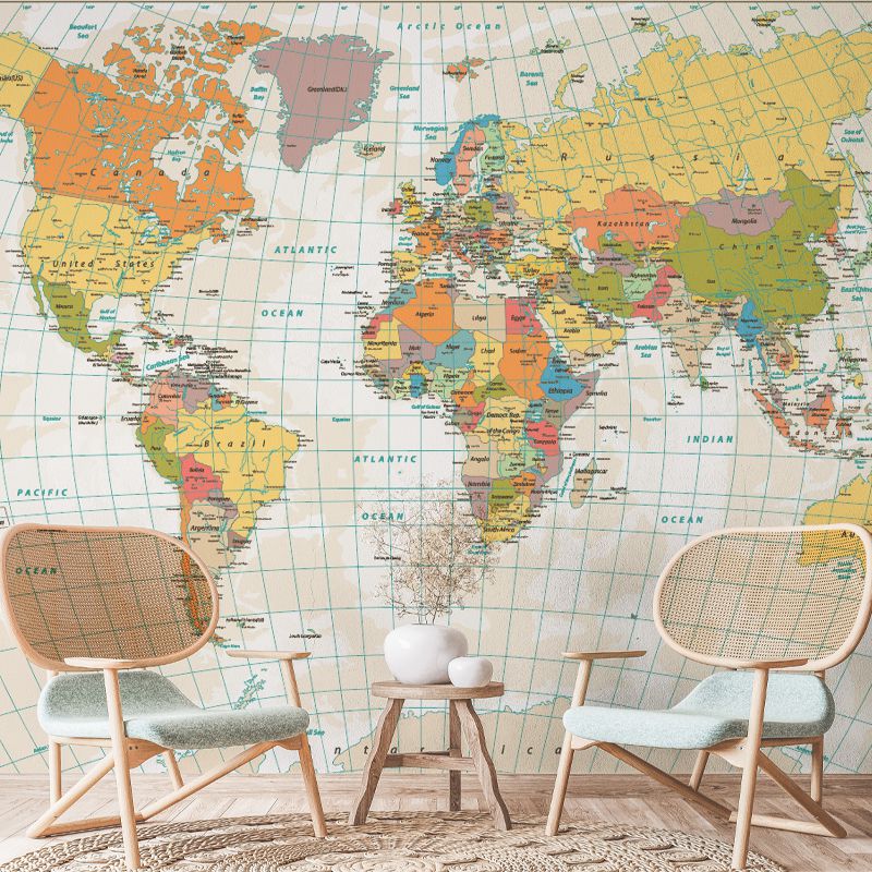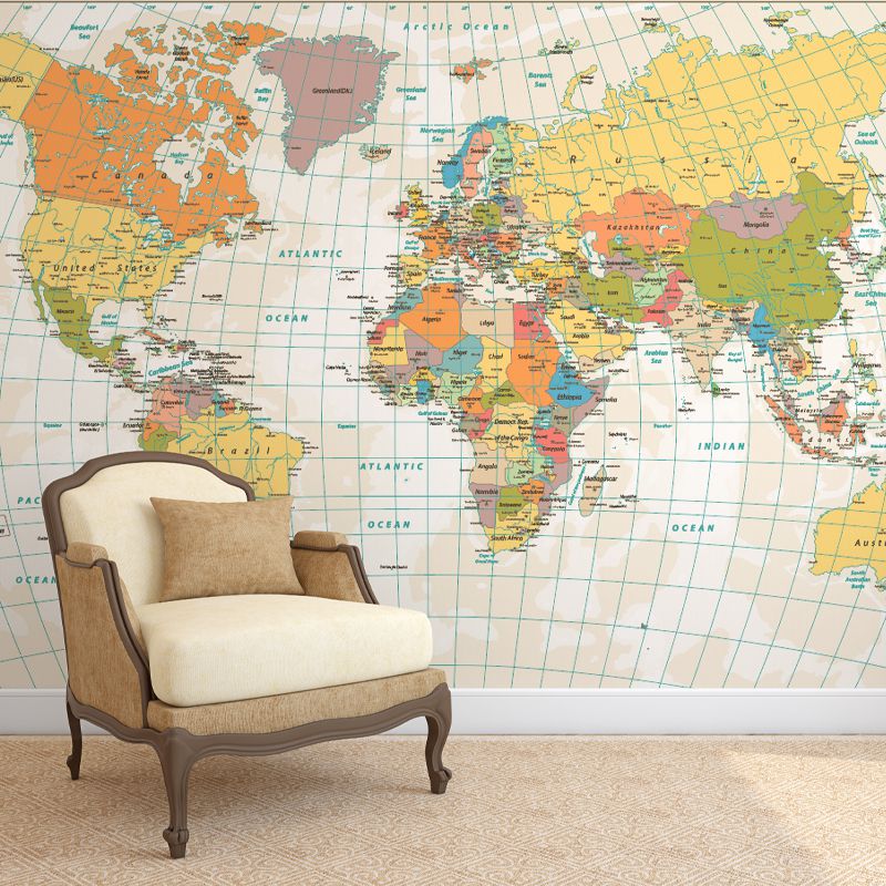Adaugă o notă de aventură și eleganță spațiului tău cu acest tapet cu harta lumii. Culorile vibrante și detaliile fine ale hărții vor transforma orice cameră într-un spațiu modern și captivant. Perfect pentru cei care iubesc geografia și călătoriile, acest tapet va adăuga o notă unică și personală decorului casei tale.