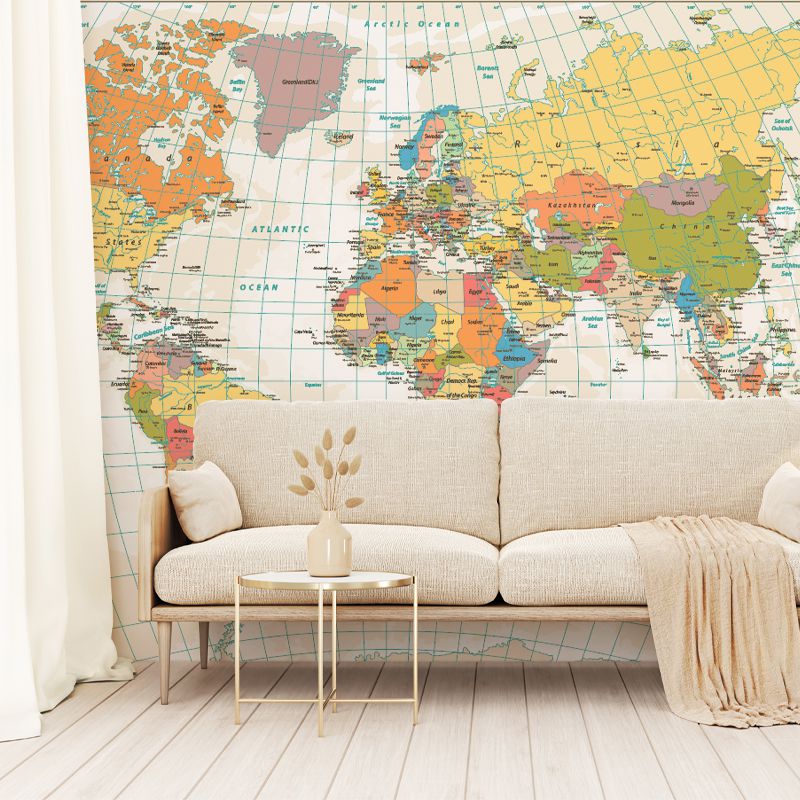 Decorează cu stil! Acest fototapet cu harta politică a lumii adaugă o notă educativă și elegantă oricărui spațiu. Ideal pentru