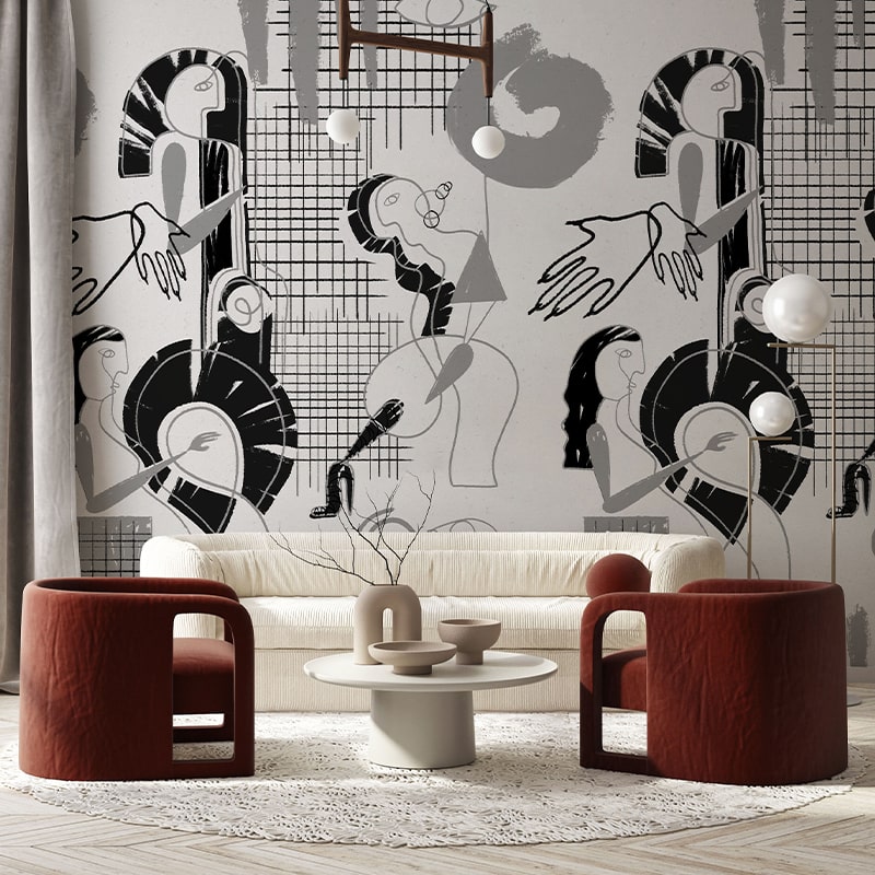 Adăugați un strop de artă abstractă în casa dumneavoastră cu acest tapet captivant. Designul minimalist, în tonuri de gri și negru, prezintă figuri geometrice și linii grafice, creând un efect vizual dinamic și modern. Perfect pentru un living, dormitor sau birou, acest tapet va adăuga o notă de eleganță și stil spațiului dumneavoastră.