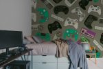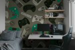 Ideal pentru camerele de joacă, dormitoarele copiilor sau orice spațiu care are nevoie de o notă jucăușă, Controls, Lilac aduce un sentiment de nostalgie și emoție. Ilustrațiile detaliate ale diferitelor controlere se adresează atât entuziaștilor jocurilor retro, cât și jucătorilor moderni. Acest tapet nu este doar o decorațiune; este o declarație de dragoste pentru cultura jocurilor. Asociați-l cu mobilier elegant sau piese de accent îndrăznețe pentru a completa aspectul.