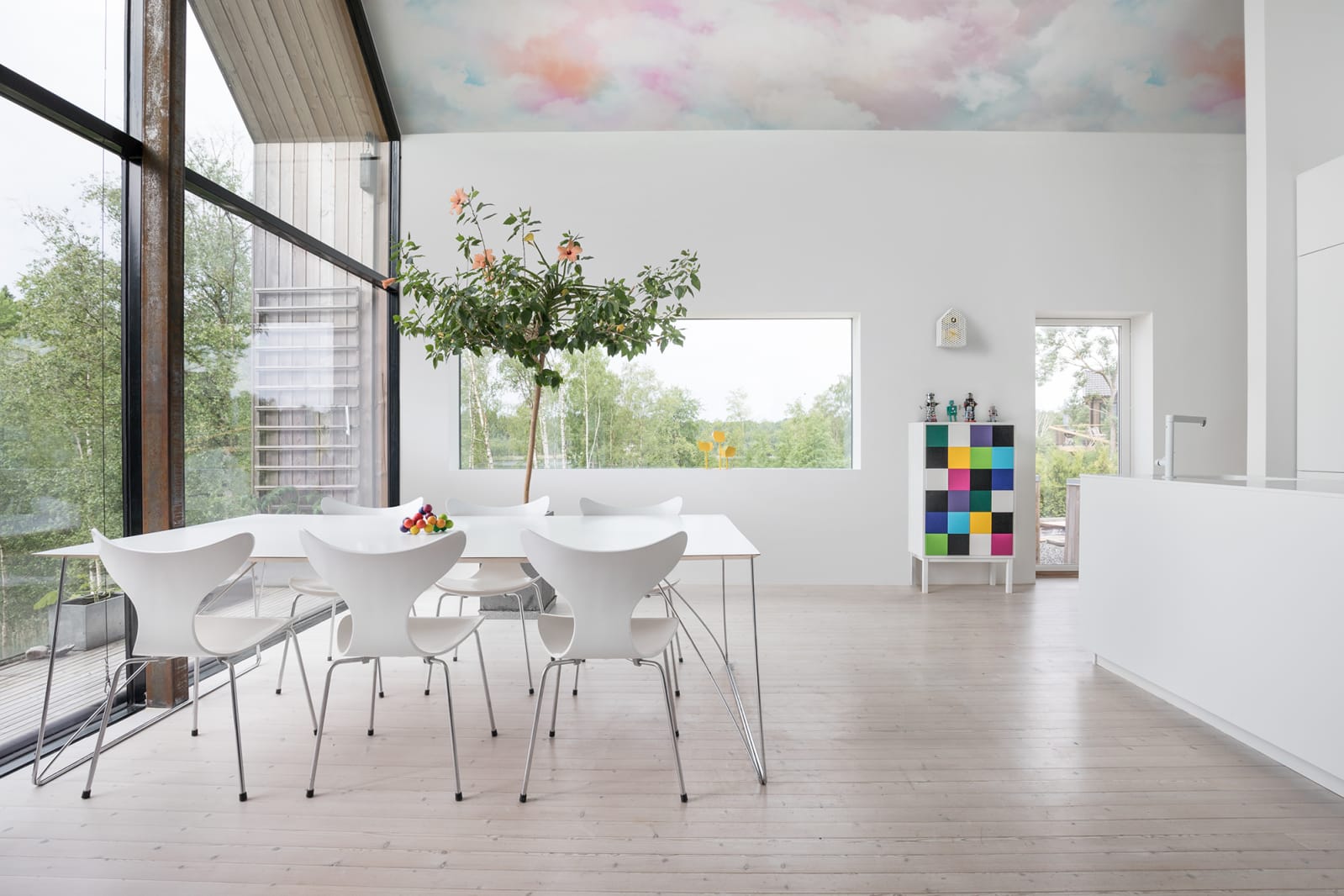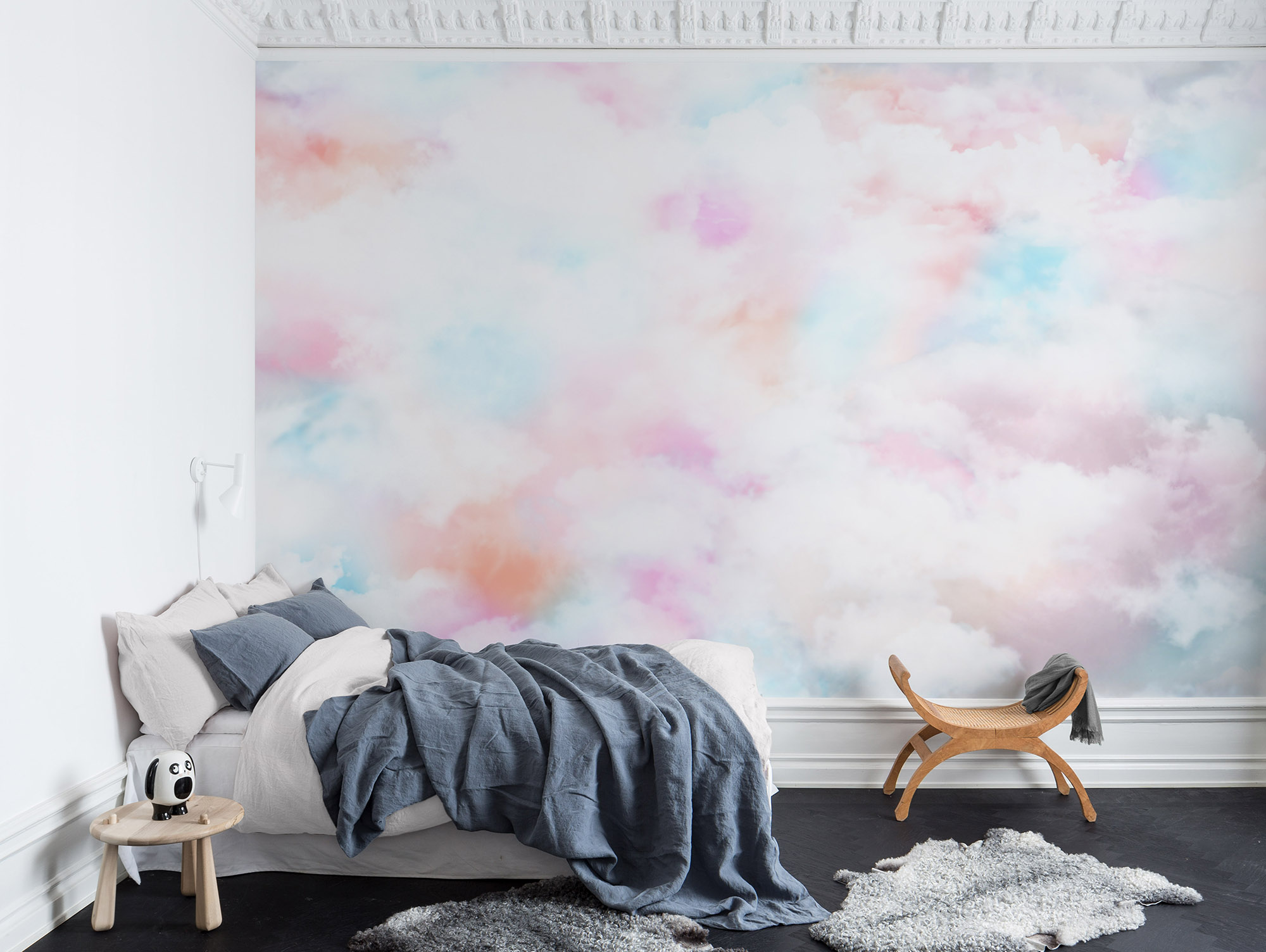Creează o cameră unde visele devin realitate. O zonă de confort plină de nori. Poți decide dacă nuanțele de roz sunt un rezultat al apusului sau al răsăritului. Poți acoperi un perete, întreaga cameră sau doar tavanul.