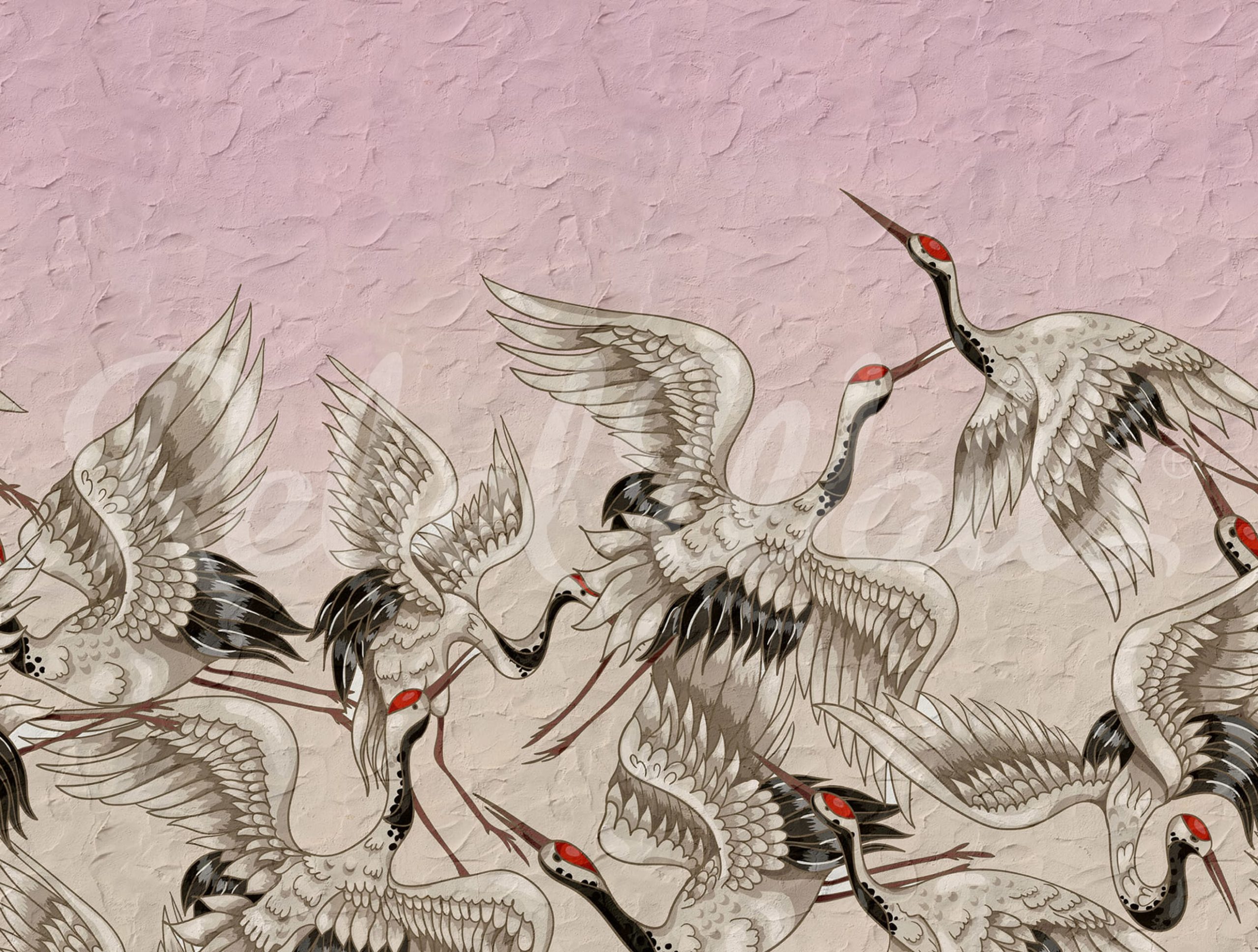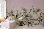 Crain Birds, Rose, tapetul perfect pentru a adăuga o notă de natură și liniște oricărei încăperi din casa ta. Acest tapet prezintă un motiv uimitor cu cocori pictați pe un fundal în nuanțe delicate de roz.