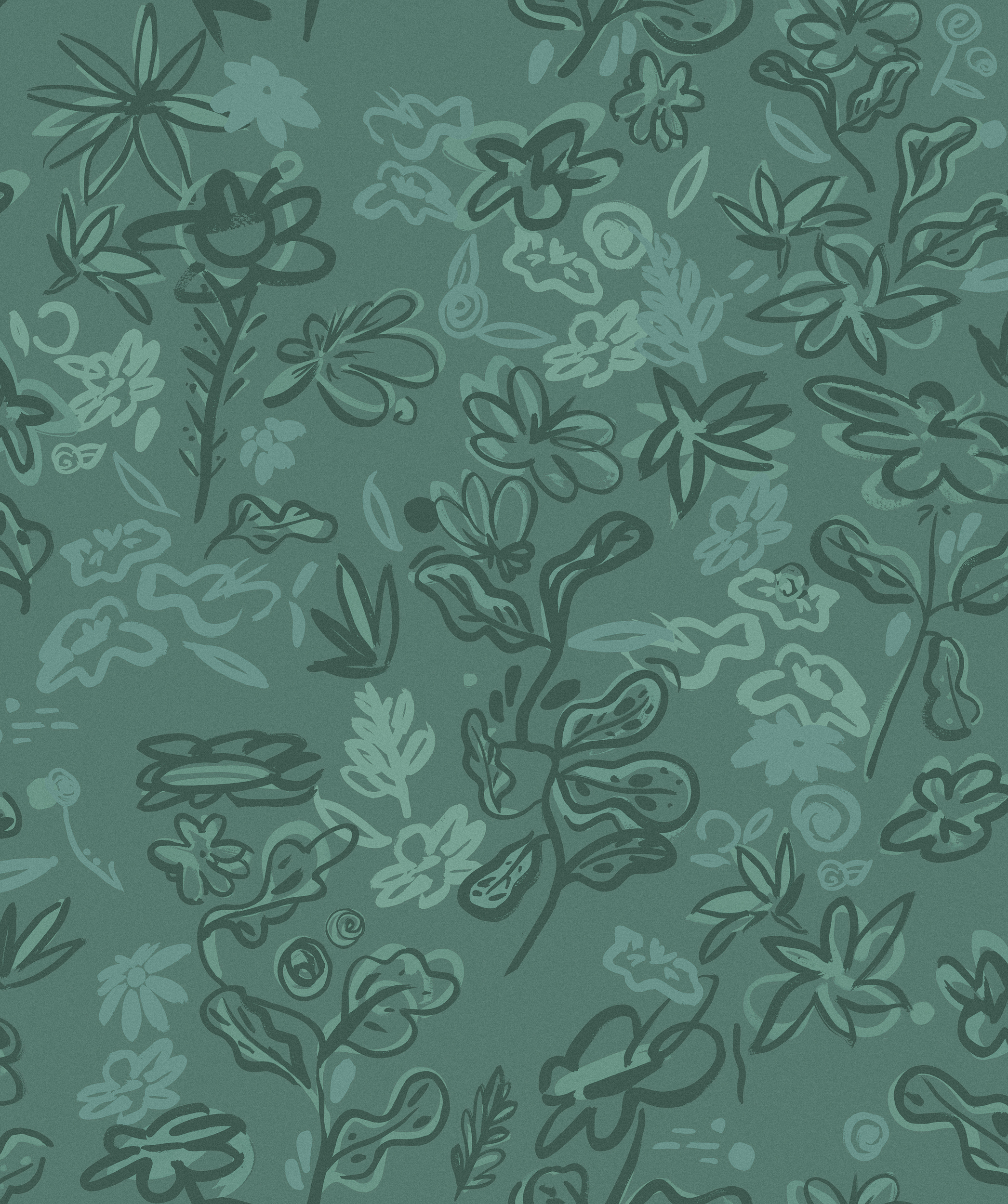 Crazy Flowers, Turquoise, din colecția L’Enfant Terrible, este un design floral, în nuanțe de verde. Curajul unei tușe nebunești de pensulă care explodează în primăvară fără avertisment.