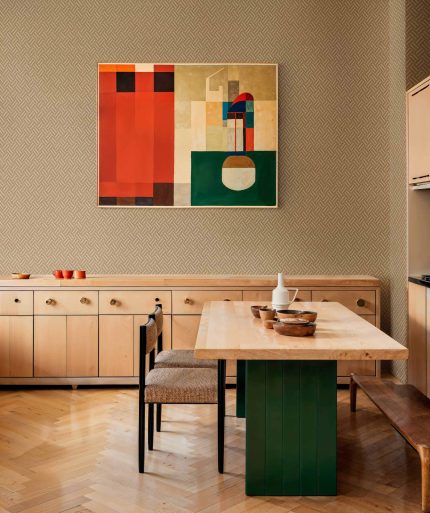 Tapetul „Crosshatch” este un model geometric din colecția Lattice Geometrics. Prezintă linii paralele dispuse în direcții diferite.