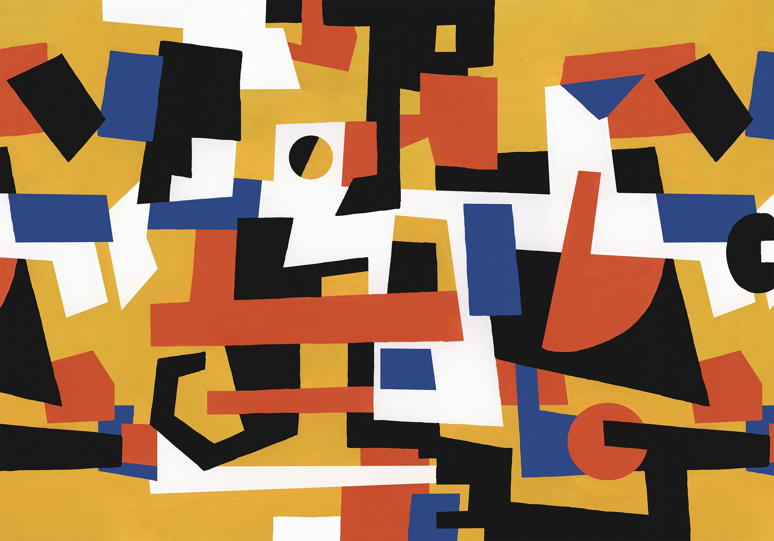 Cubic Experience, Yellow, din colecția L’Enfant Terrible, este un design geometric în nuanțe de galben/portocaliu. O compoziție imposibilă din punct de vedere geometric care te face să te simți bine.