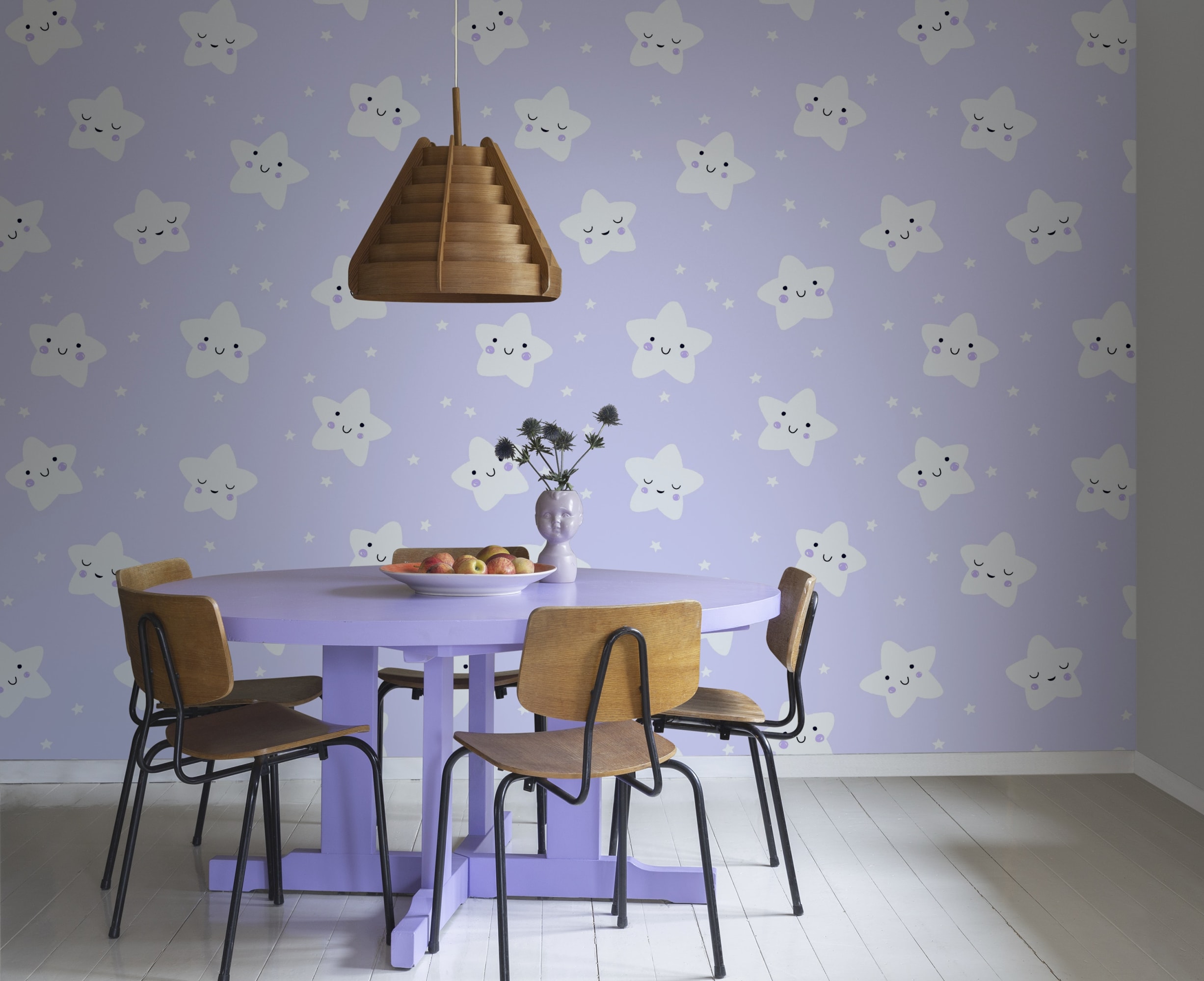 Iluminați camera copilului dvs. cu strălucirea blândă a modelului Cute Stars, Lilac. Stelele zâmbitoare adaugă o notă de inocență și uimire, încurajându-i pe cei mici să viseze la scară mare.