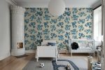 Îmbrățișați farmecul capricios cu acest model plin de viață cu păsări stilizate care zboară grațios pe un fundal albastru deschis. Aripile sunt decorate cu puncte jucăușe, inimi și vârtejuri, adăugând o notă de mișcare. Perfect pentru a crea un spațiu vesel, aerisit, care inspiră creativitate și libertate.