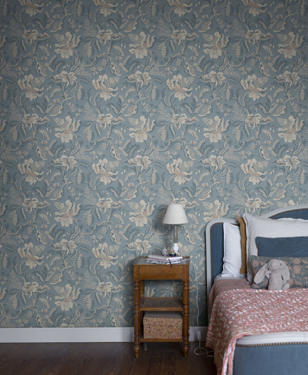 Acest design jucăuș se bazează pe un tapet original parizian Domino de la sfârșitul secolului al XIX-lea. Fructele stilizate, florile și frunzișul formează un amestec de culoare care va ridica starea de spirit a oricărei încăperi în care se află. Varianta Misty Blue vine cu tonuri de albastru cețos.