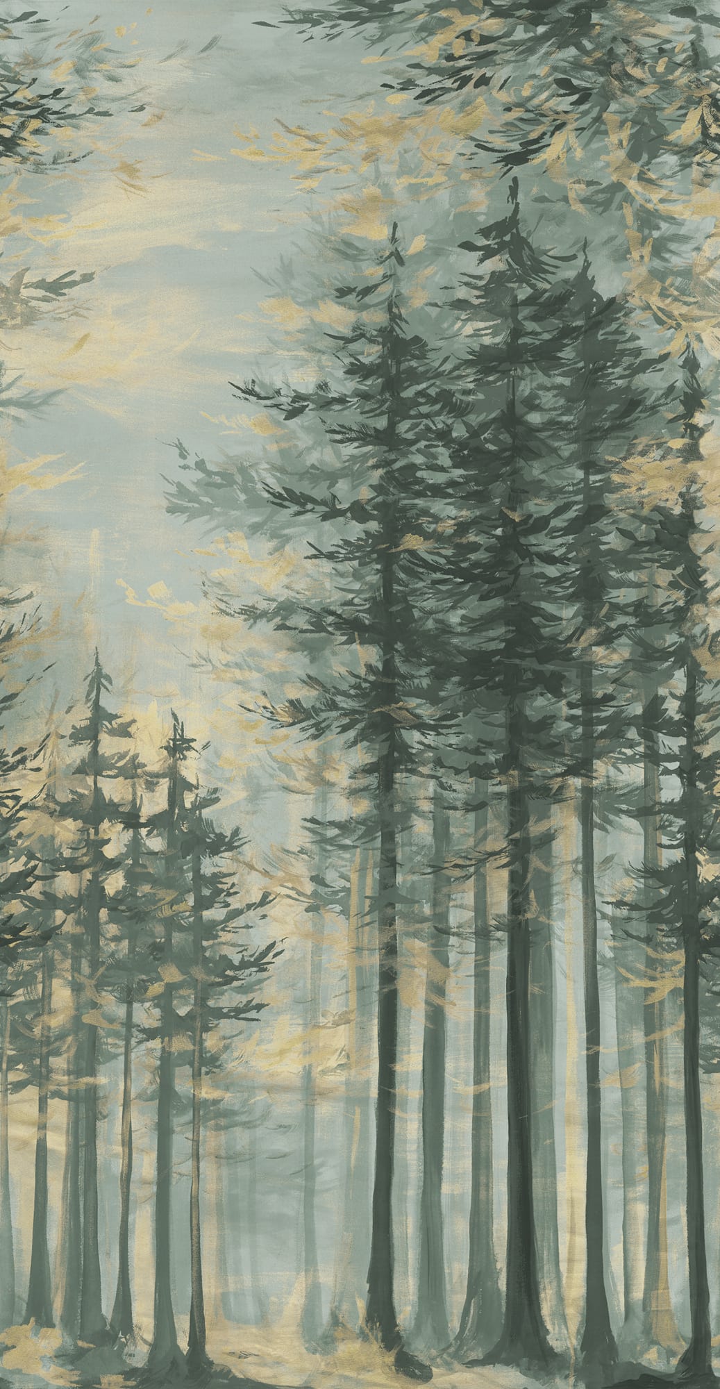 Mama natura se face simțită! Un design izbitor al primei raze de lumină aurie a soarelui care străpunge pădurea de pini. Modelul este pictat în ulei, cu linii mari, bogate în straturi, creând profunzime și o impresie aproape mistică. Un fundal superb pentru un dormitor sau o sufragerie.