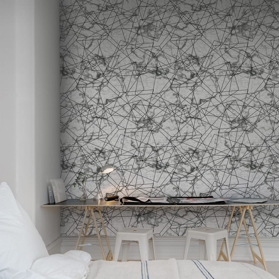 Acest fototapet ne aduce aminte de prezentarea unui profesor de fizică. Un fundal alb se amestecă cu un model de plasă cu formațiuni congruente. Un alb cenușiu cu pete de gri completează trăsăturile negre. Acest aranjament inovativ conceput ar înviora orice loc de muncă. Modern dar și de bun gust, acest aranjament împărtășește un amestec unic de tehnicalitate și artă. Arată-le clienților sau prietenilor că ești în pas cu moda, impresionant și focusat. Acesta este unul dintre cele mai populare desene. La modă, fresh, contemporan.
