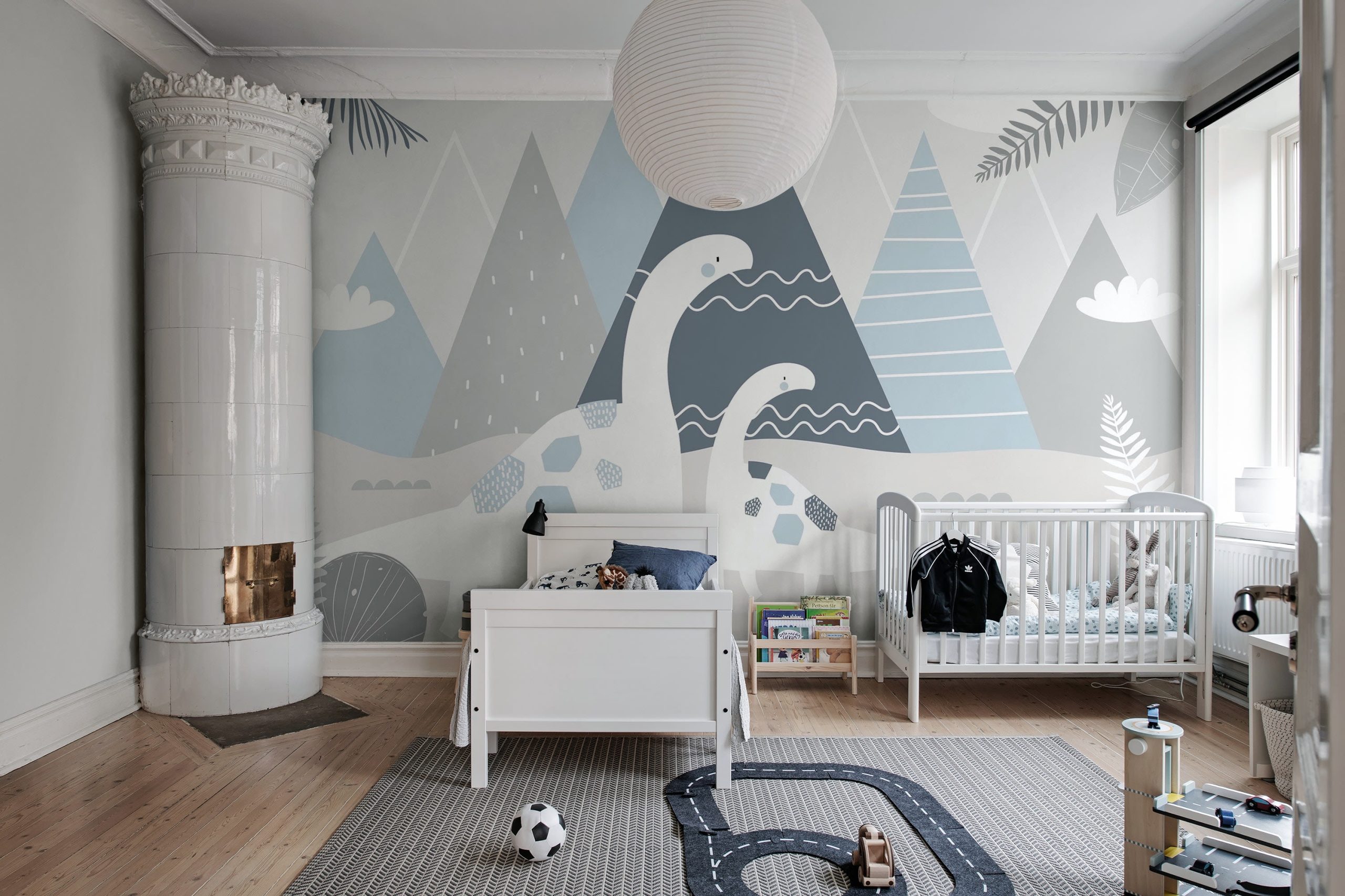 Loc de joacă preistoric: Transformați camera copilului într-un peisaj montan plin de farmec cu tapetul Dinosaur Mountain, Baby Blue. Norii pufoși plutesc deasupra dinozaurilor jucauși care se plimbă printre munți blânzi. Această scenă fermecătoare, plină de culori pastelate, creează un mediu de creștere în care imaginația se plimbă la fel de liber ca odată dinozaurii.