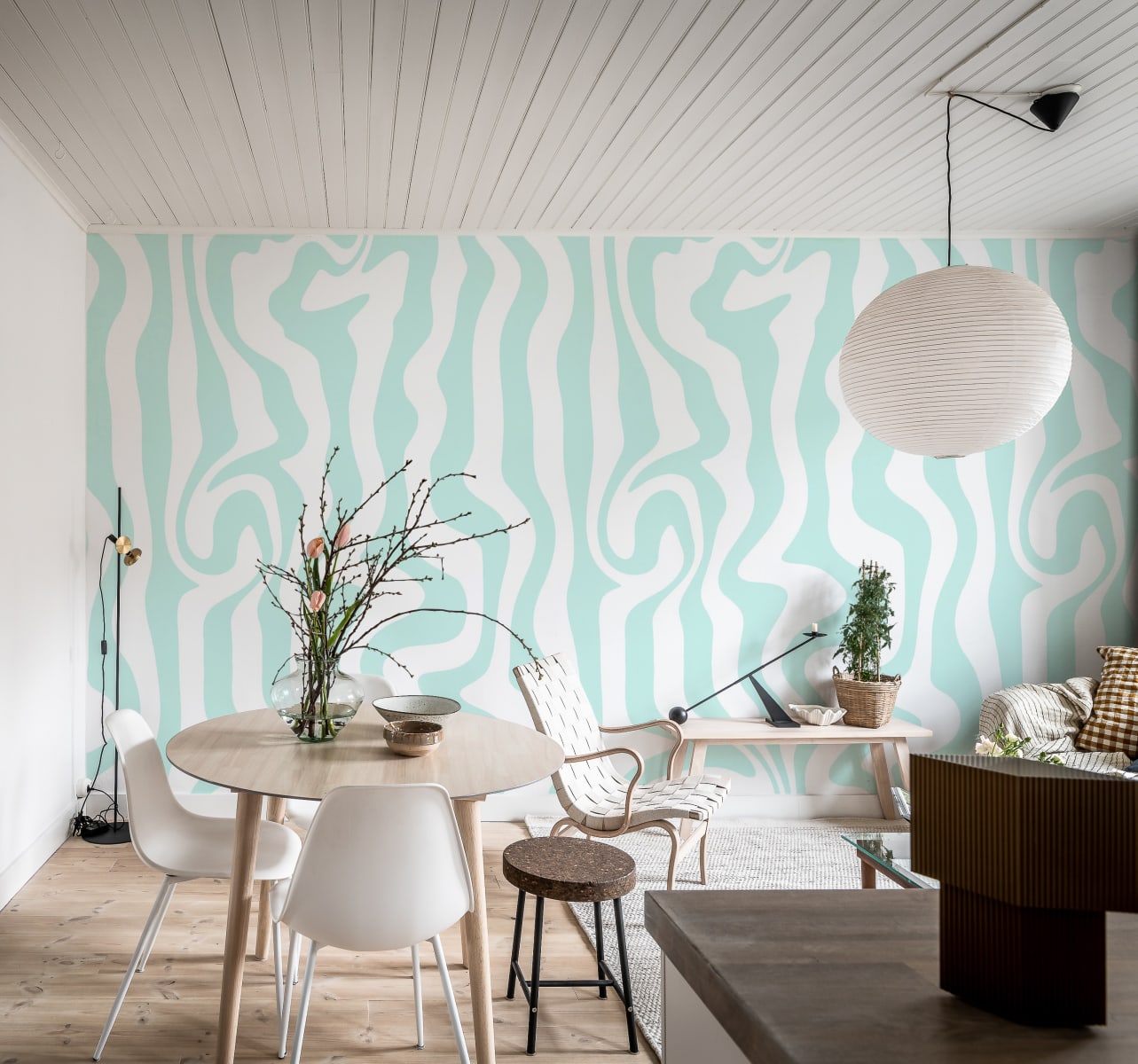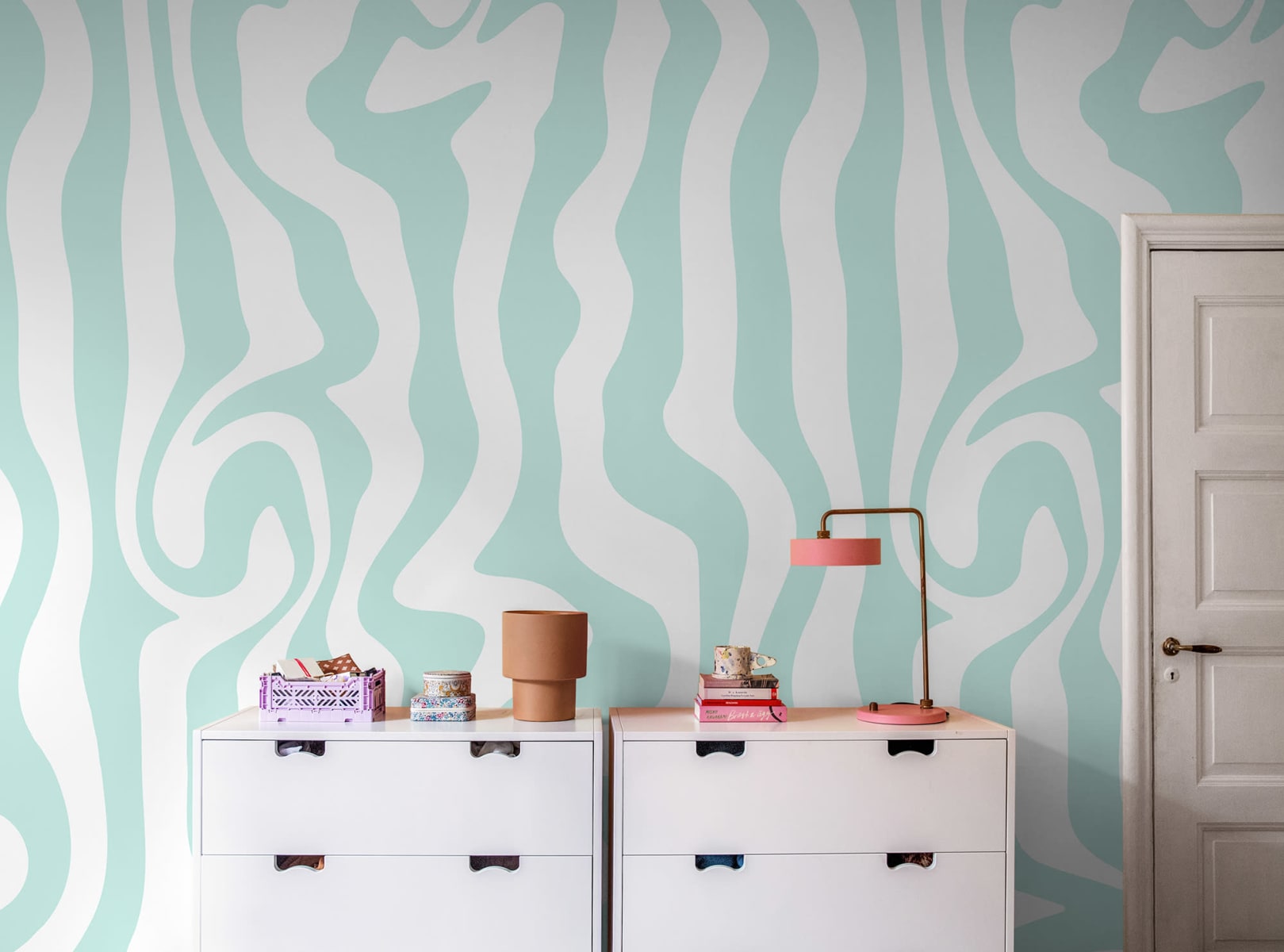 Revendică-ți spațiul cu acest design jucăuș, dar cool, cu linii spiralate uimitoare. Varianta Turquoise se simte deosebit de proaspătă și curată cu modelul său în turcoaz și alb. Acest design face parte din colaborarea noastră Meet a Rebel cu Happy Socks, prezentând printurile lor iconice de șosete.