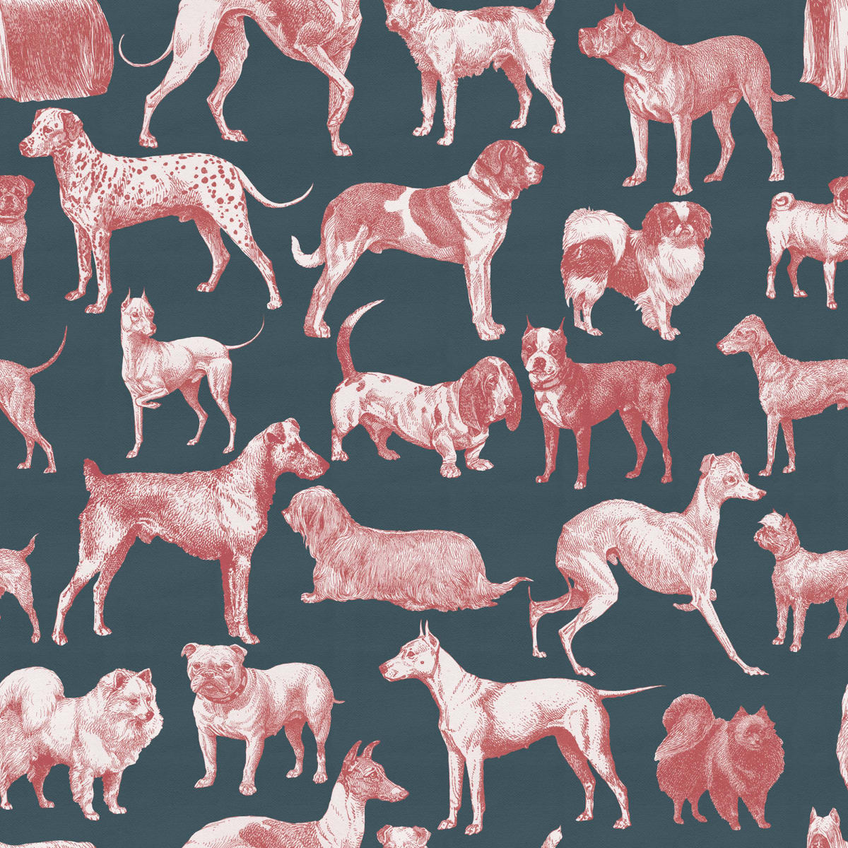 Dogs, Blue este conceput ca o ilustrație cu o serie de câini diverși în alb și roșu. Aceste imagini de fundal vă infuzează pereții cu un amestec unic de eleganță și joacă. Îmbrățișați frumusețea acestei compoziții artistice care arată personalitatea fiecărui câine. Fundalul deschis îmbunătățește contrastul, făcând să iasă în evidență detaliile câinilor, creând un afișaj vizual uimitor care atrage atenția. Indiferent dacă ești un iubitor pasionat de câini sau pur și simplu apreciezi lucrări de artă remarcabile, tapetul Dogs, Blue cu siguranță îi va captiva pe toți cei care intră în casa ta.