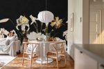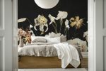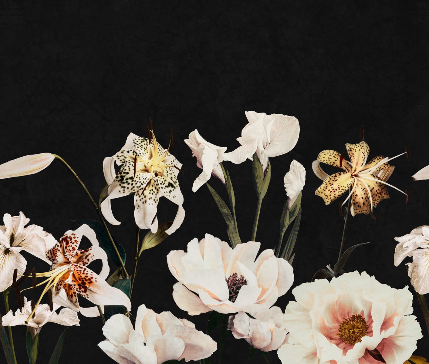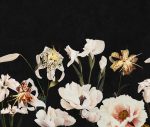 „Dramatic Bouquet, Black” te invită să te scufunzi într-o lume de frumusețe botanică cu un twist teatral. Acest design uimitor prezintă o colecție de flori care par să izbucnească dintr-un fundal negru adânc, petalele lor strălucind cu o luminozitate delicată care atrage atenția. Frumusețea piesei rezidă în contrastul său; întunericul amplifică albul moale și rozul florilor, în timp ce detaliile și textura florilor sunt aduse la viață.