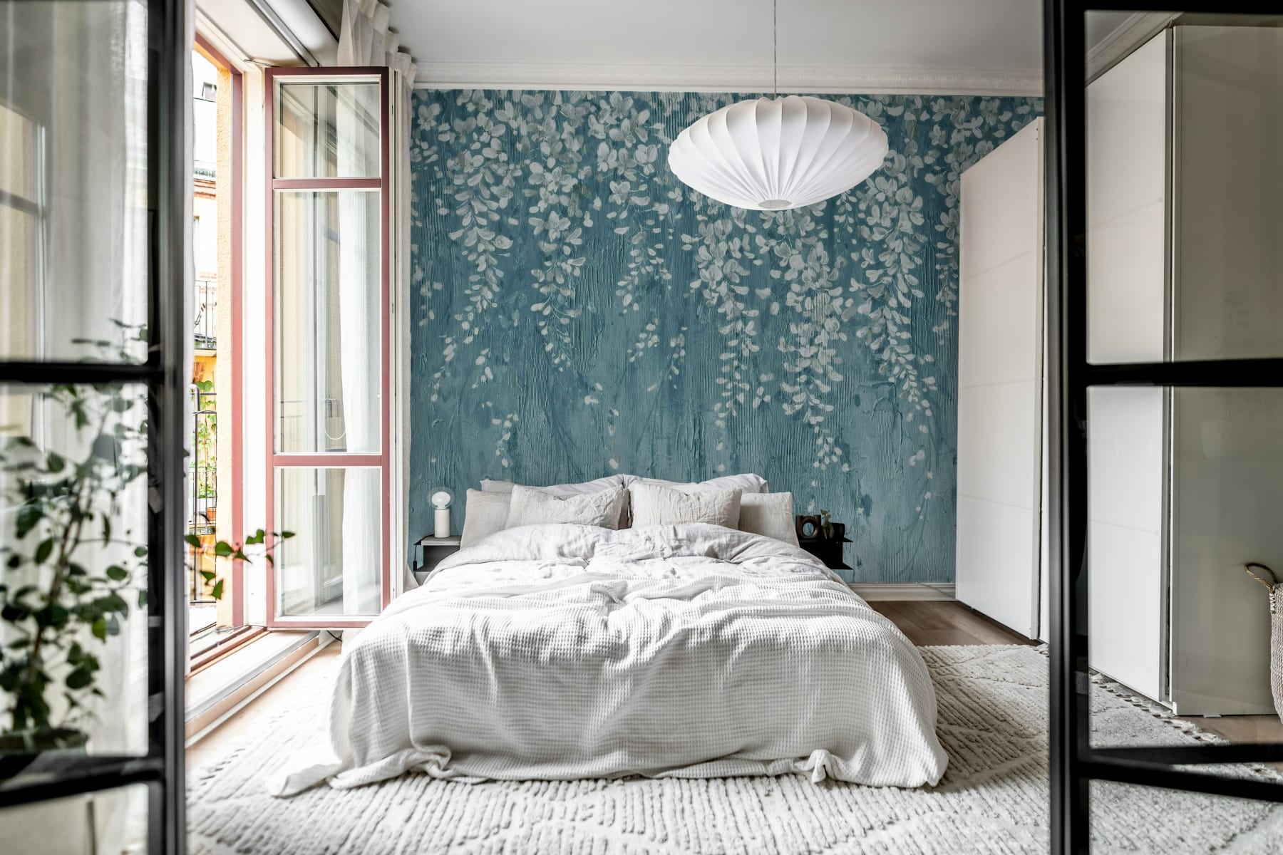 Home Tapet și Fototapet Draped Blossoms, Dark Blue, Rebel Walls