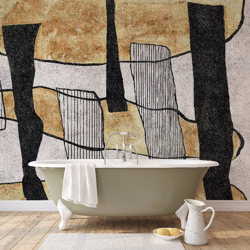 Adaugă o notă de eleganță modernă spațiului tău cu Abstract, un design abstract cu forme organice, în culori calde, care