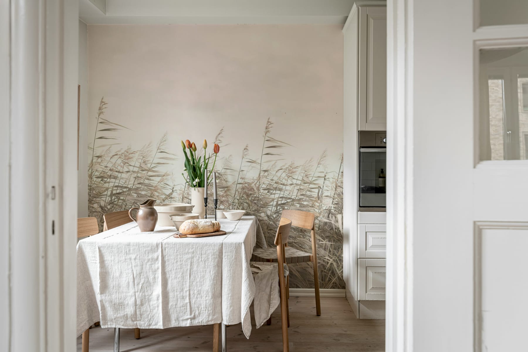 Tapetul „Dreamy Reed, Pink” surprinde frumusețea liniștită și nostalgică a stufului care se leagănă în briza ușoară. Cu o paletă de bejuri moi și tonuri pământești atenuate, acest tapet evocă liniștea unui câmp liniștit sau marginea unei mlaștini calme. Trestiile sunt reprezentate cu o atenție deosebită la detalii, oferind scenei o adâncime realistă care îndeamnă privitorul să se piardă în contemplare. Mișcarea subtilă și eleganța naturală a acestui design fac din el o alegere versatilă pentru crearea unui mediu calmant în diverse spații, de la dormitoare la băi și colțuri de lectură. Tonurile neutre se îmbină armonios cu diferite decoruri, oferind un fundal atât discret, cât și fermecător. Aduceți șoaptele liniștitoare ale naturii în casa dvs. cu „Dreamy Reed, Beige” și transformați-vă pereții într-un tablou de odihnă și frumusețe organică.