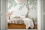 Lucrare de artă cu copaci de vis pentru pereții dvs. Acest design oferă familiei dvs. un baldachin de protecție uimitor și ascunzătoarea perfectă pentru jocuri creative sau lectură. Culoarea Light Green creează o atmosferă senină cu nuanțe moi de verde și maro și detalii drăguțe în roz și liliac pe o bază deschisă.