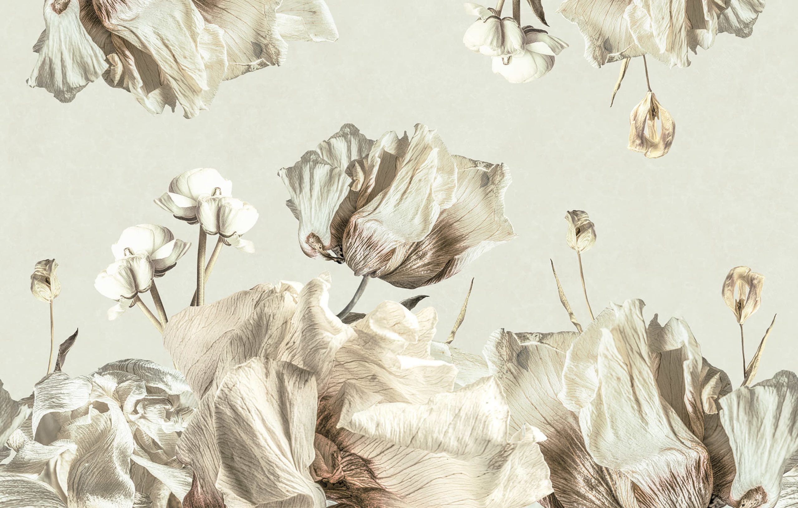 Capturați frumusețea delicată și durabilă a florilor cu tapetul Dried Bouquet, Light, care prezintă un buchet de flori uscate, albe, pe un fundal deschis, transmițând o senzație de delicatețe și liniște.