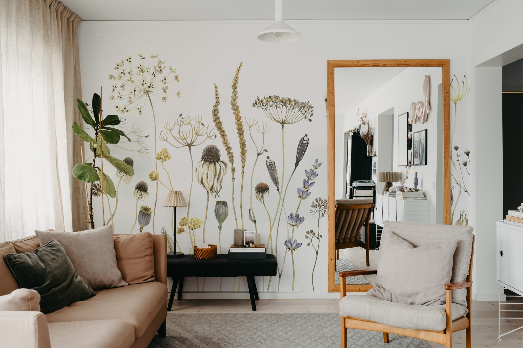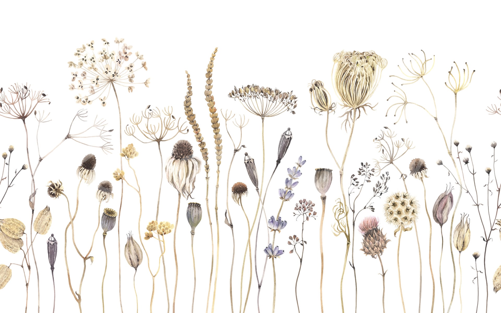 Tapetul Dried Flower Meadow, Beige celebrează frumusețea discretă a florilor sălbatice în forma lor uscată, prezentând detalii complexe ale capetelor cu semințe, tulpinilor și ierburilor în tonuri blânde, pământii. Fundalul neutru bej sporește eleganța naturală a designului, făcându-l perfect pentru crearea unei atmosfere calme și senine în dormitoare, livinguri sau chiar bucătării. Estetica delicată și botanică a decorului Dried Flower Meadow, Beige completează o varietate de stiluri interioare, de la rustic la modern, oferind un impact vizual subtil, dar izbitor, care aduce frumusețea naturii în interior.