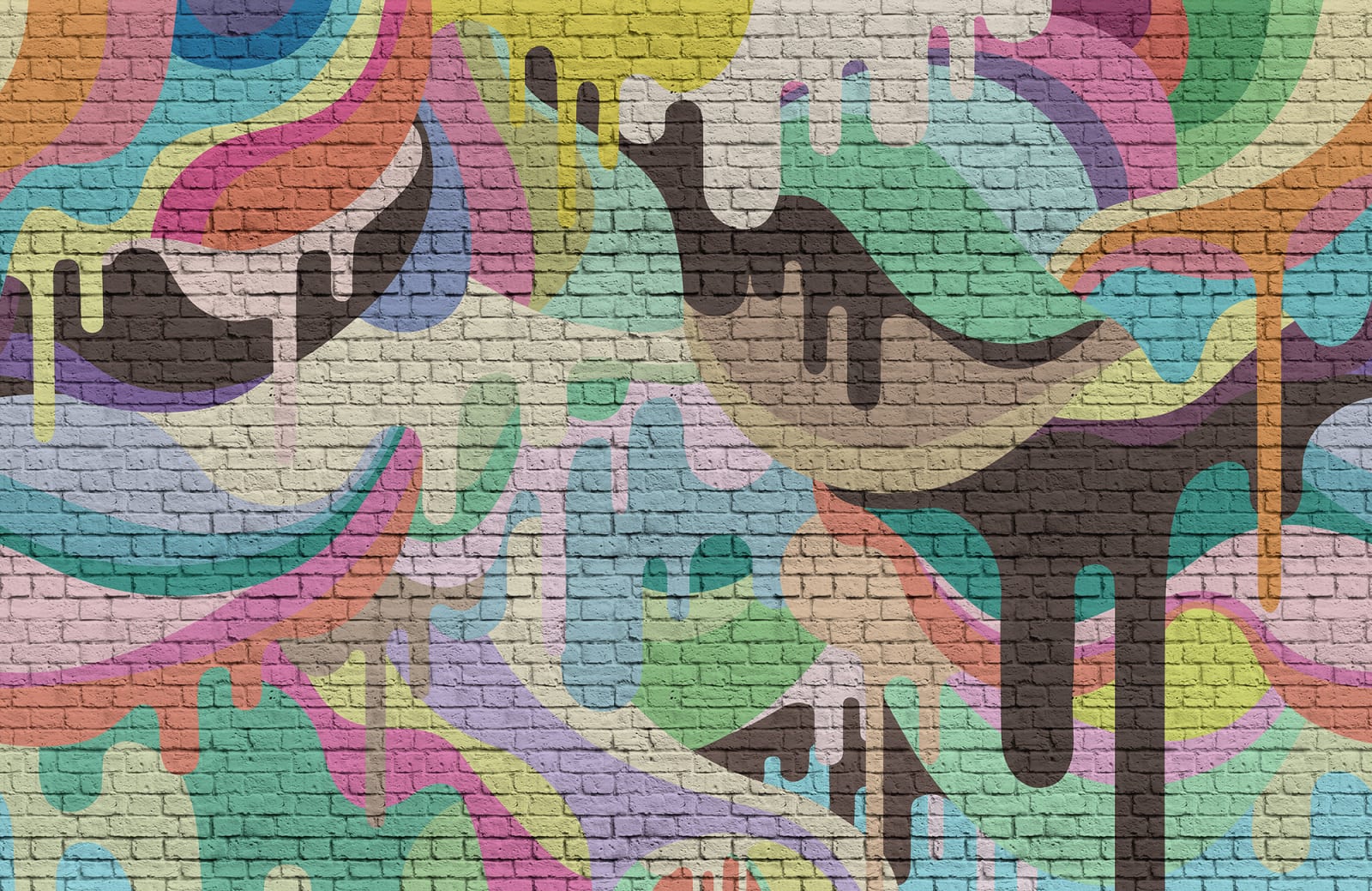 Picturile murale de graffiti au atât de multe forme și culori. „Dripping Rainbow” oferă forme rotunde și culori netede. Sub arta străzii se sprijină un zid solid din cărămidă.