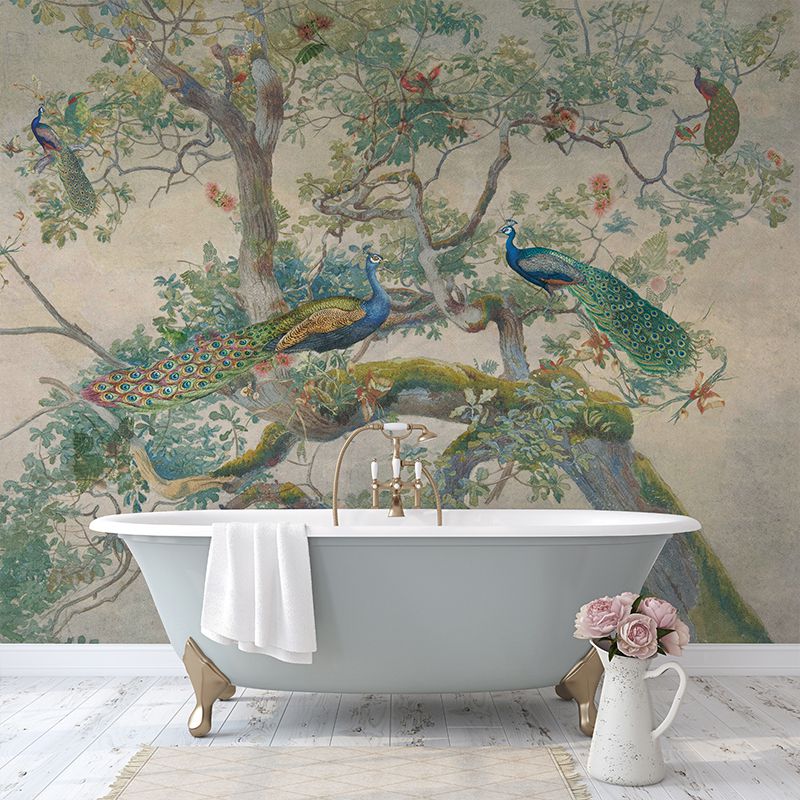 Transformă orice cameră cu acest tapet/fototapet vibrant. Designul spectaculos cu păuni aduce un aer sofisticat și plin de culoare.