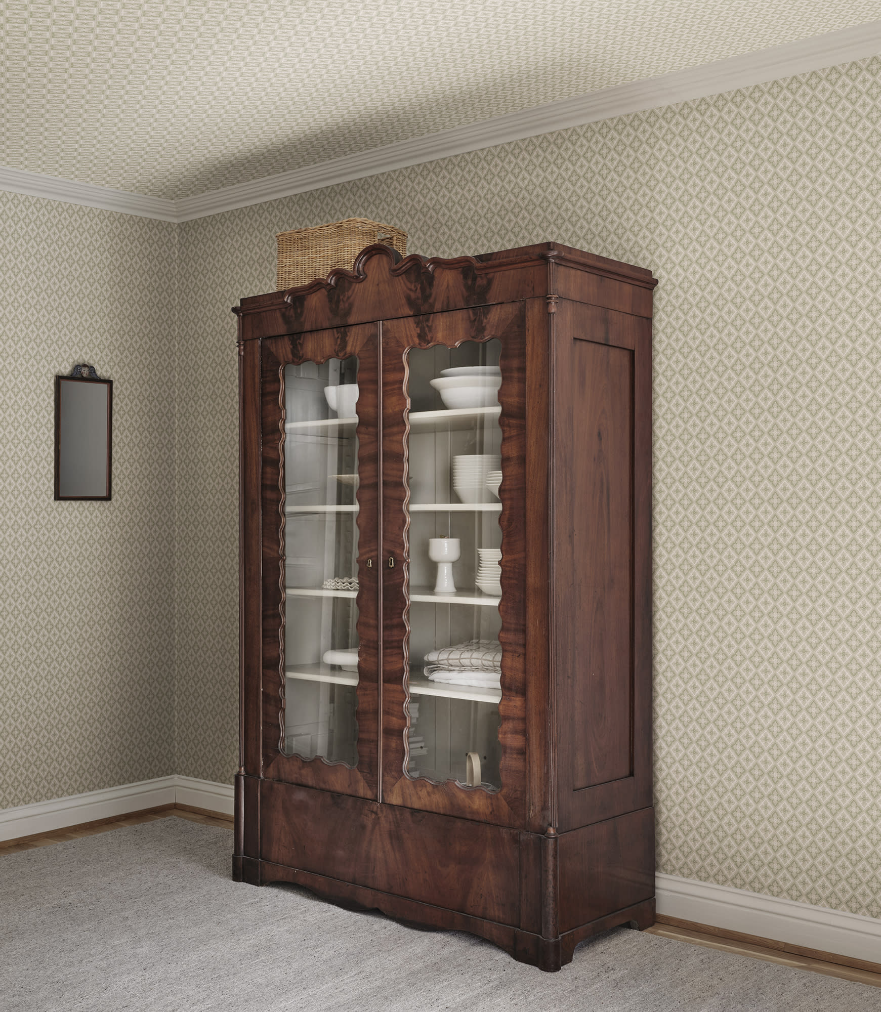 Acest spalier clasic a fost unul dintre cele mai populare modele din anii 1800 și probabil că a acoperit inițial un tavan. Astăzi decorează pereții la fel de frumos. Schema de culori, verde, vine în nuanțe de verde moale și bej.