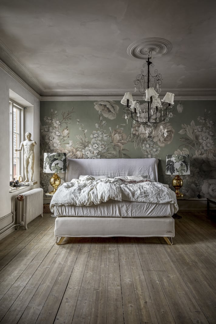 Efraim, Soft Green, realizat din țesătură de in vintage, are o structură minunată, iar fundalul verde adaugă profunzime și căldură. Un contrast frumos cu nuanțele mai reci ale florilor. Doar minunat!
