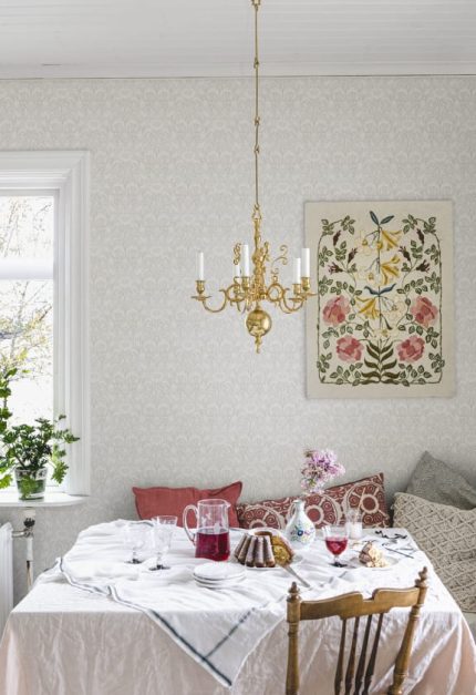 Precum câmpurile de la sfârșitul verii. Interpretarea noastră a unui medalion clasic este țesută într-un fundal complicat de frunze și paie arcuite. Modelul dens este bogat în detalii și creează o senzație de mișcare senină pe pereții pe care îi împodobește. Emil este disponibil în trei culori diferite într-o paletă deschisă.