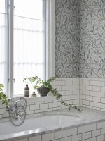 Tapetul Sigfrid blue are un model de frunze dens, care se întinde pe perete și dă camerei un aspect armonios.