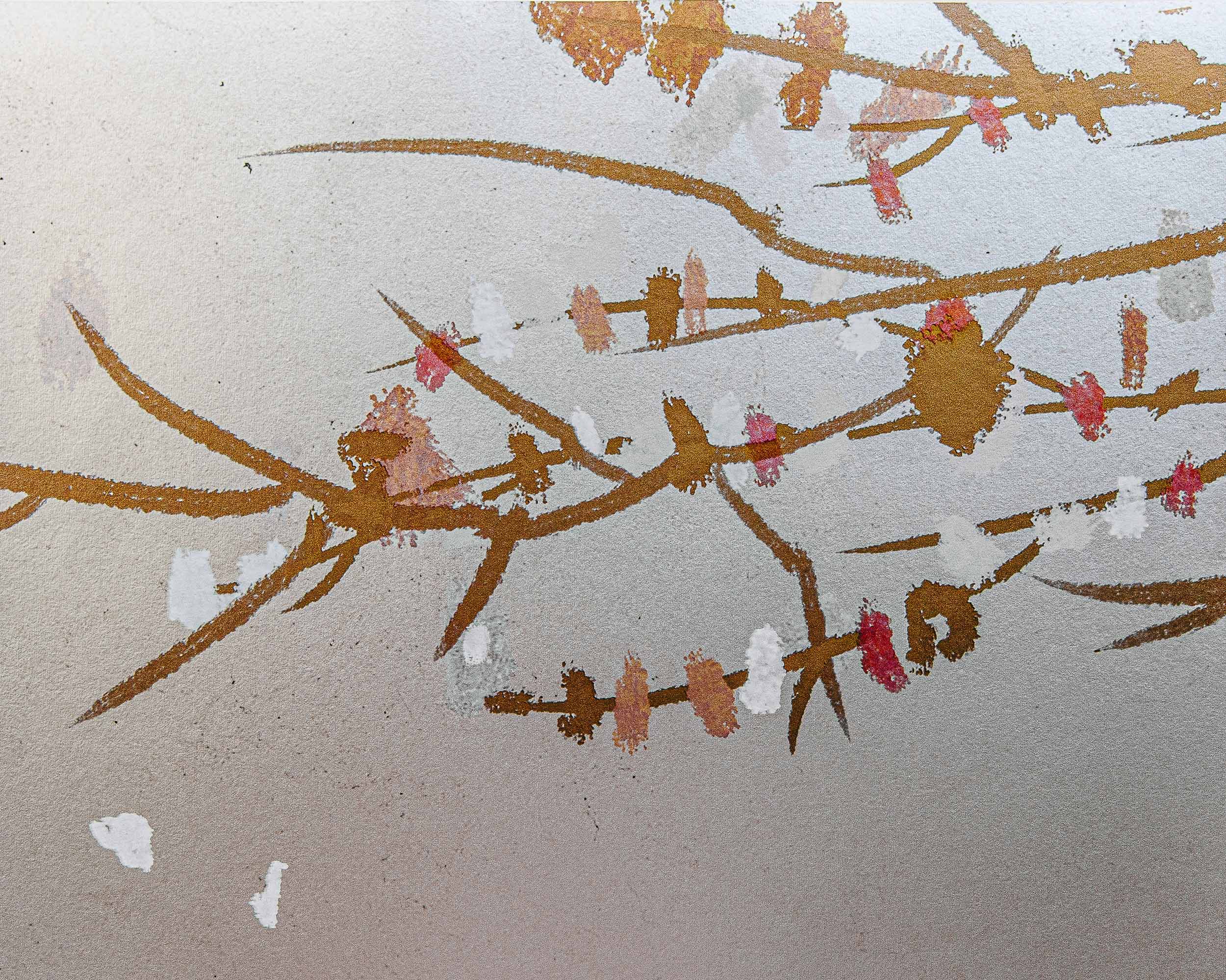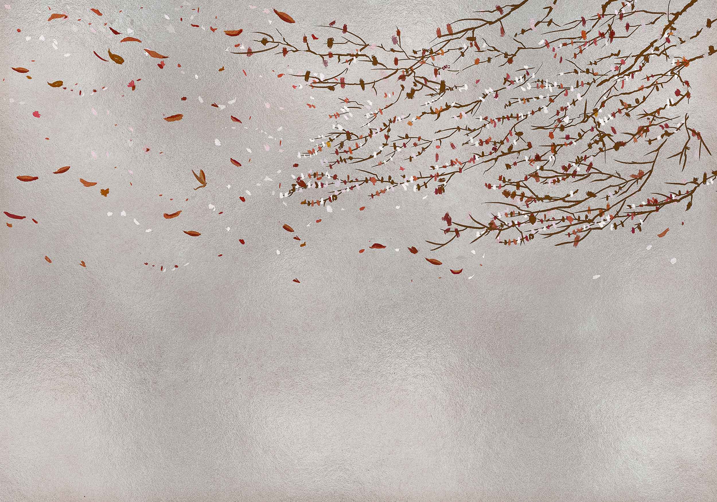 Tapetul lavabil Eolia de la Coordone prezintă un model de inspirație vegetală din colecția Random Metallics.