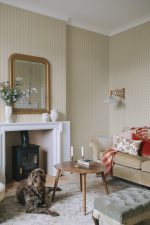 Acest tapet clasic, cu dungi late, se potrivește perfect într-o încăpere modernă, precum și într-o amenajare mai tradițională. Tapet >