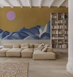 Transformă-ți casa într-un sanctuar de relaxare cu acest fototapet! Design abstract cu munți și soare, ideal pentru un decor modern și sofisticat. Creează un ambient unic și inspirat în living sau dormitor.