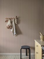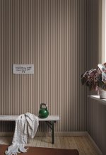 Creează un ambient elegant cu acest tapet cu dungi verticale în tonuri calde de burgundy și bej. Ideal pentru orice cameră, adaugă un plus de stil!