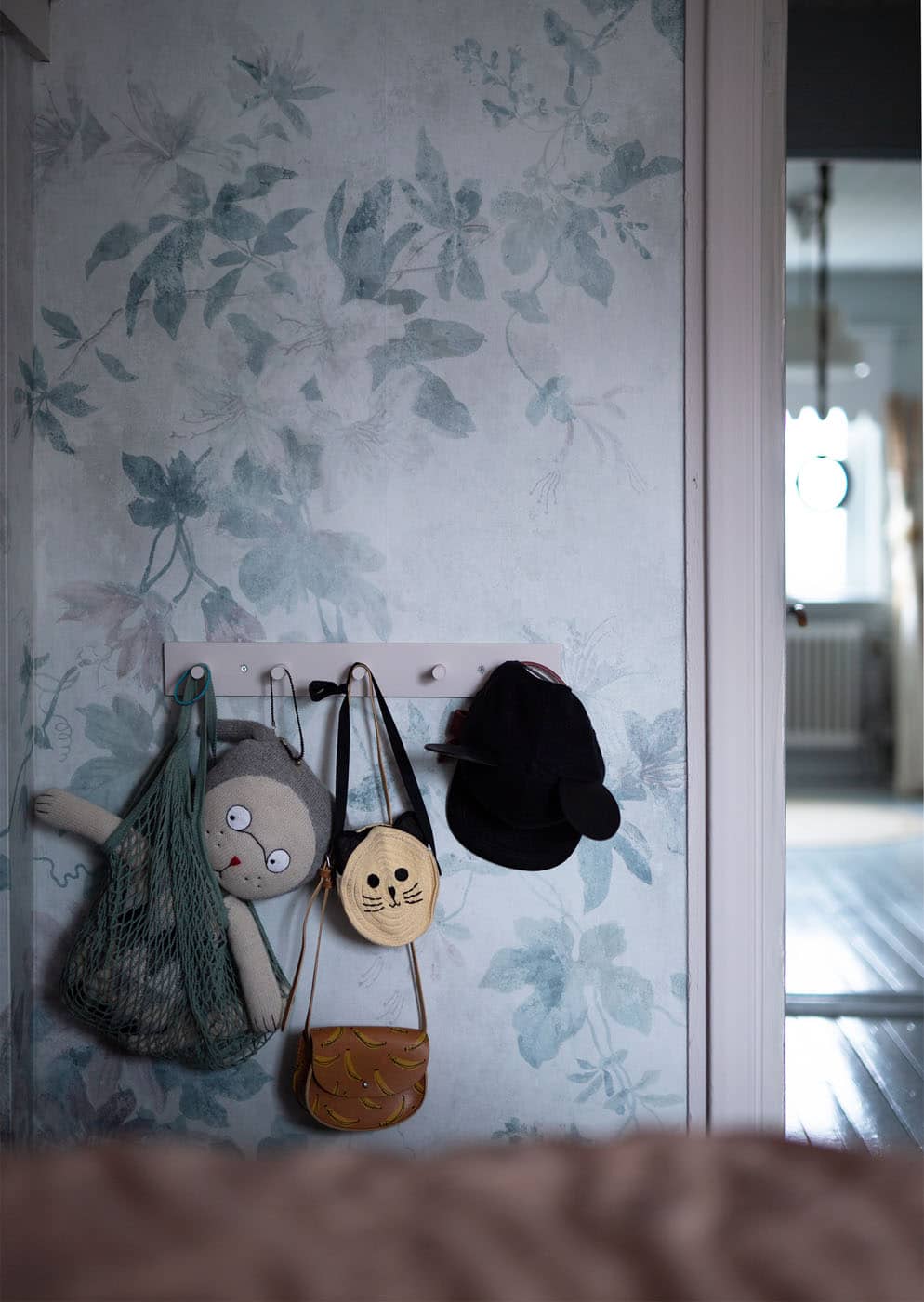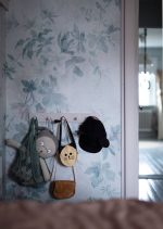 Tapetul Sigfrid blue are un model de frunze dens, care se întinde pe perete și dă camerei un aspect armonios.