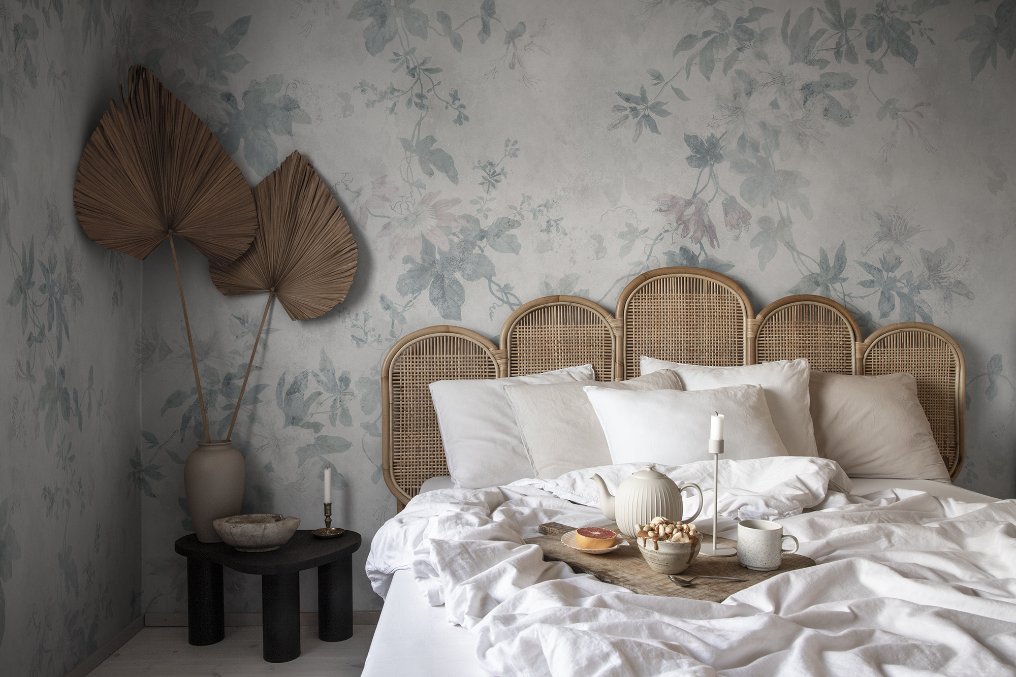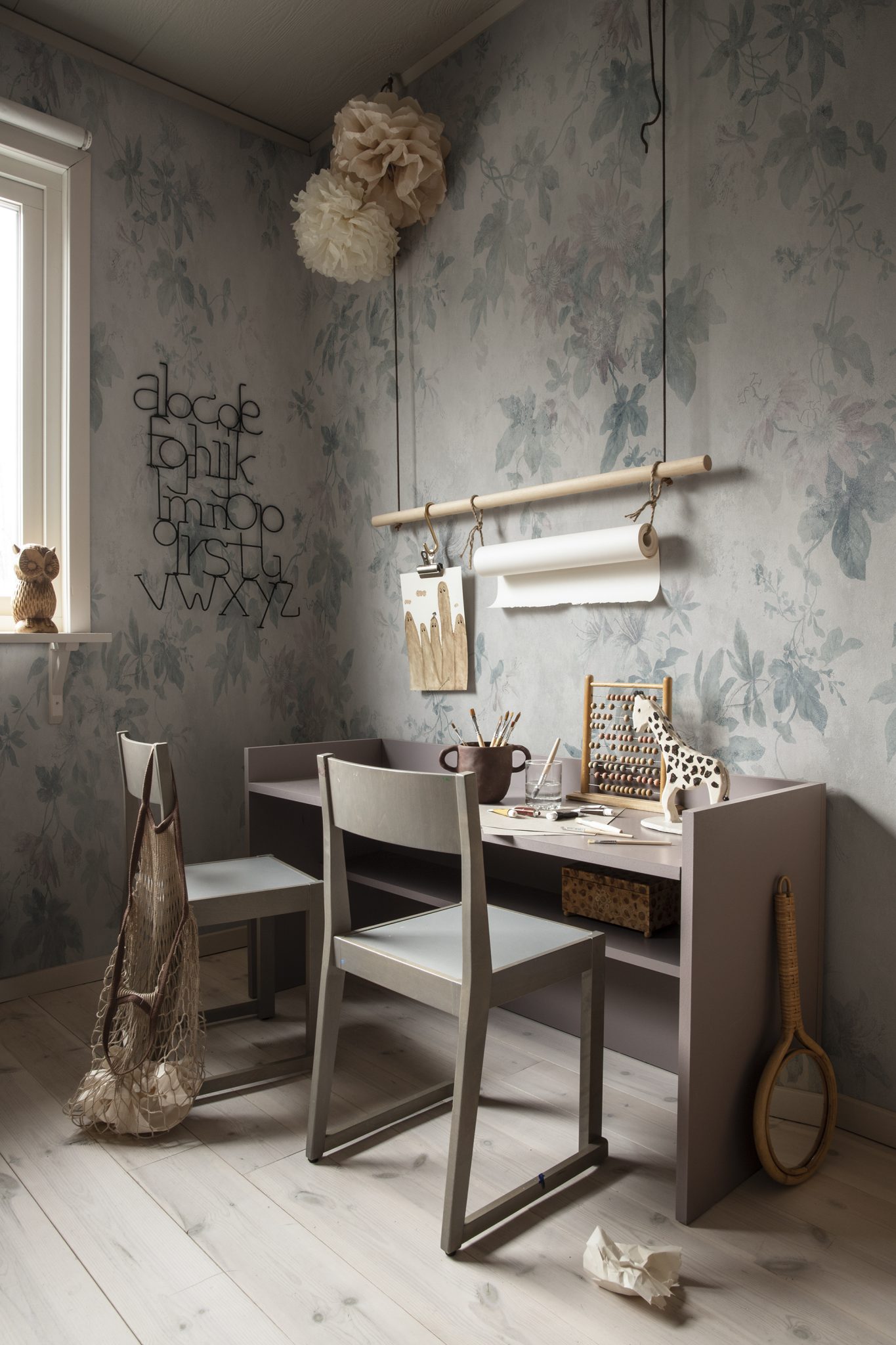 Marieberg este o operă de artă murală care arată ca un decor de porțelan frumos pictat manual. Frunzișul formează un