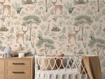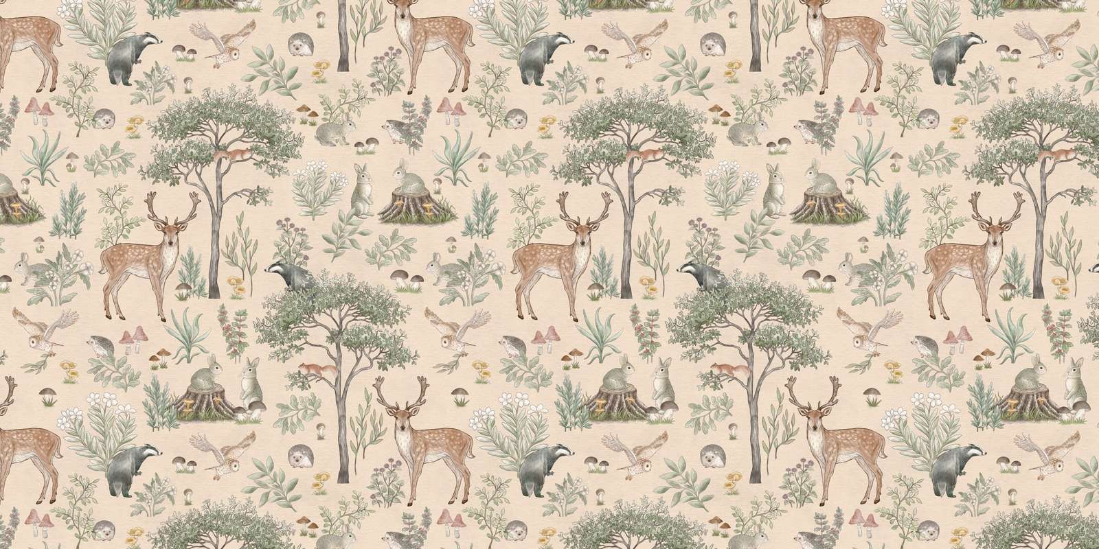 Creează o atmosferă magică în camera copilului tău cu acest tapet încântător. Design bej cu animale și elemente din pădure, ideal pentru un decor cald și primitor. Perfect pentru copii de toate vârstele!