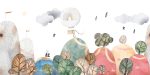 Tapetul Fantasy Hills, Multi aduce o atmosferă magică și aventuroasă în camerele sau zonele de joacă ale copiilor. Cu ilustrațiile sale moi, asemănătoare acuarelelor, cu dealuri multicolore, copaci și o casă de vis cocoțată pe vârful unui nor, acest design este un fundal perfect pentru ca imaginația oricărui copil să se dezlănțuie. Pirații navighează în depărtare, în timp ce păsările zboară pe cer, creând o atmosferă plină de viață, de poveste. Culorile vibrante și personajele jucăușe fac din acest tapet o alegere interesantă și captivantă, ideală pentru grădinițe, camere de joacă sau orice spațiu care ar avea nevoie de o atingere de fantezie.