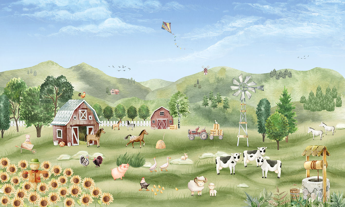 Adaugă un strop de bucurie și culoare în camera copilului cu acest tapet fermecător. Cu o fermă idilică, plină de animale prietenoase, tapetul Farm Joy va crea o atmosferă caldă și primitoare, perfectă pentru imaginația micuților. Imaginile pictate în acuarelă adaugă un aer de prospețime și naturalețe, transformând camera într-un colț de poveste.
