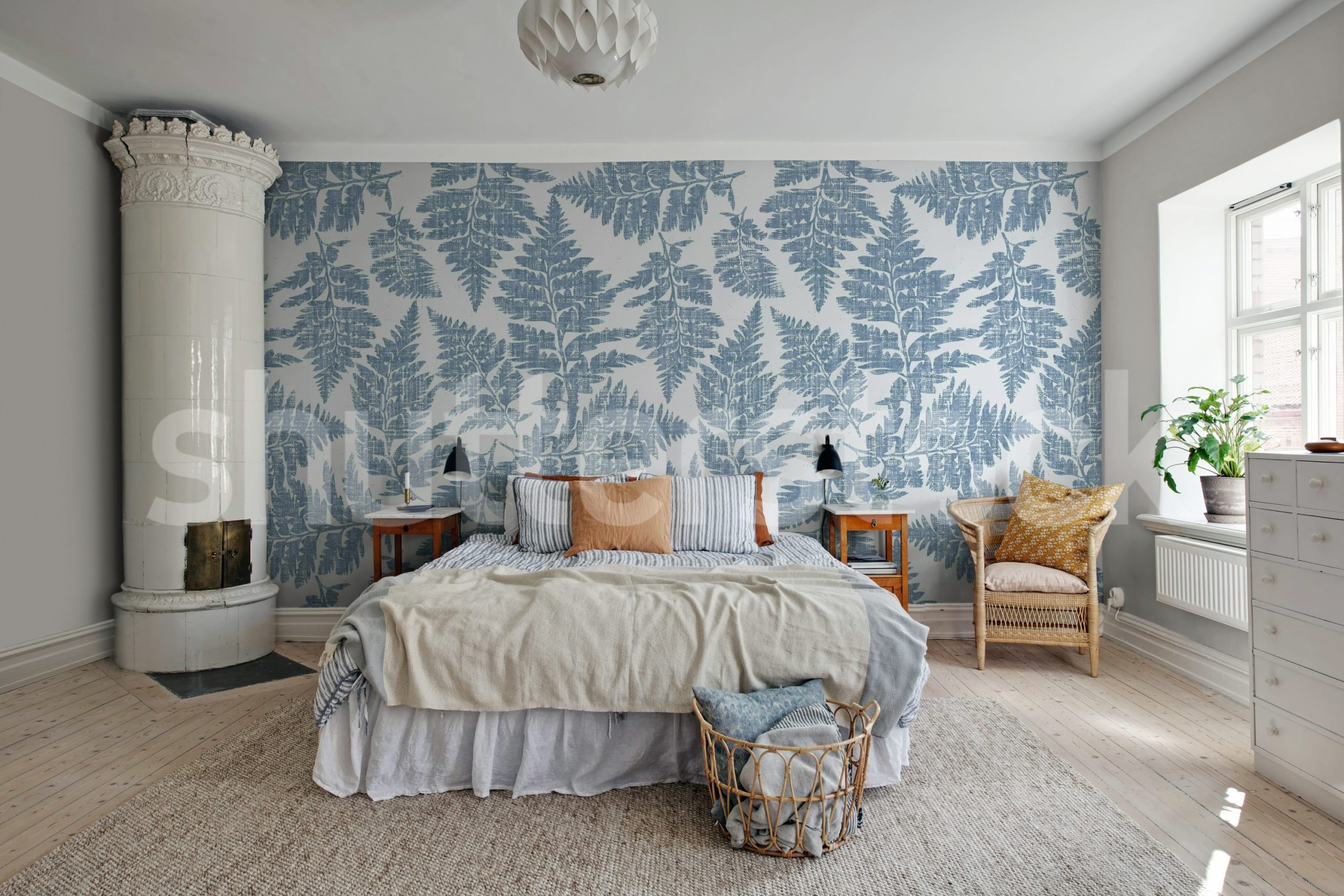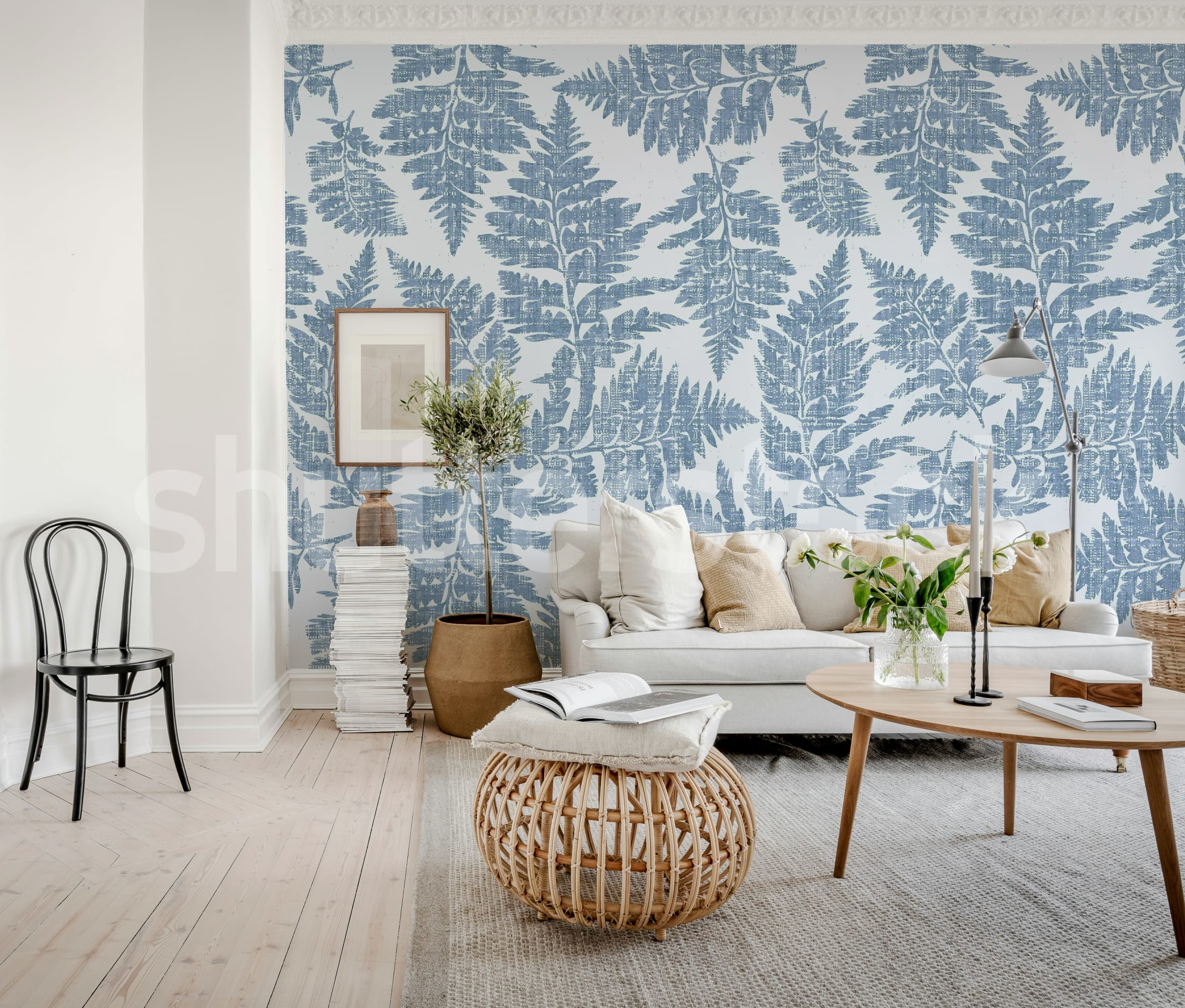 Creează un interior proaspăt cu acest tapet cu ferigi albastre. Perfect pentru un decor natural și relaxant. Un design botanic delicat, ideal pentru orice cameră.