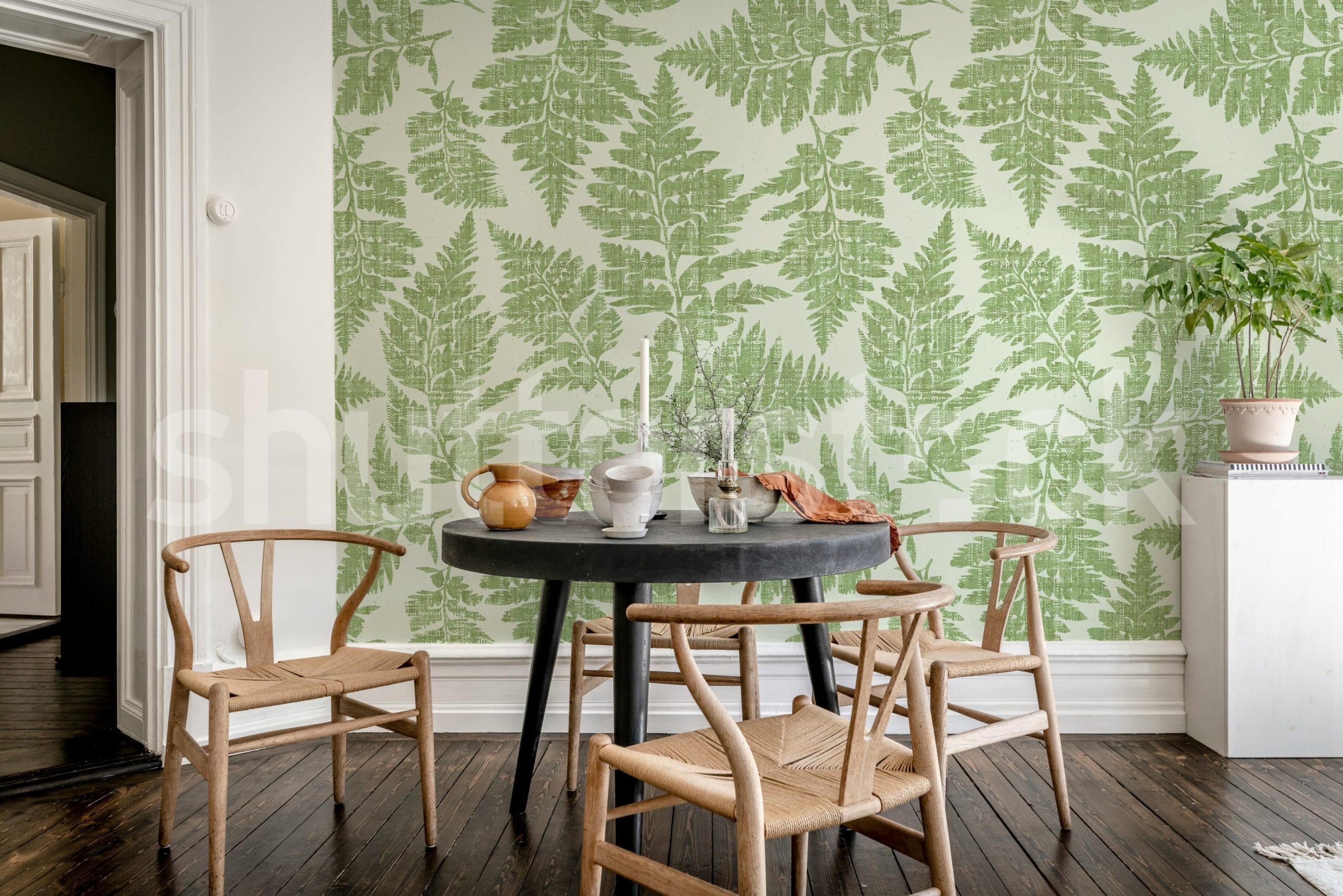 Adaugă un farmec proaspăt și revigorant cu acest tapet cu imprimeu de ferigă verde. Perfect pentru a crea un spațiu relaxant și plin de viață.