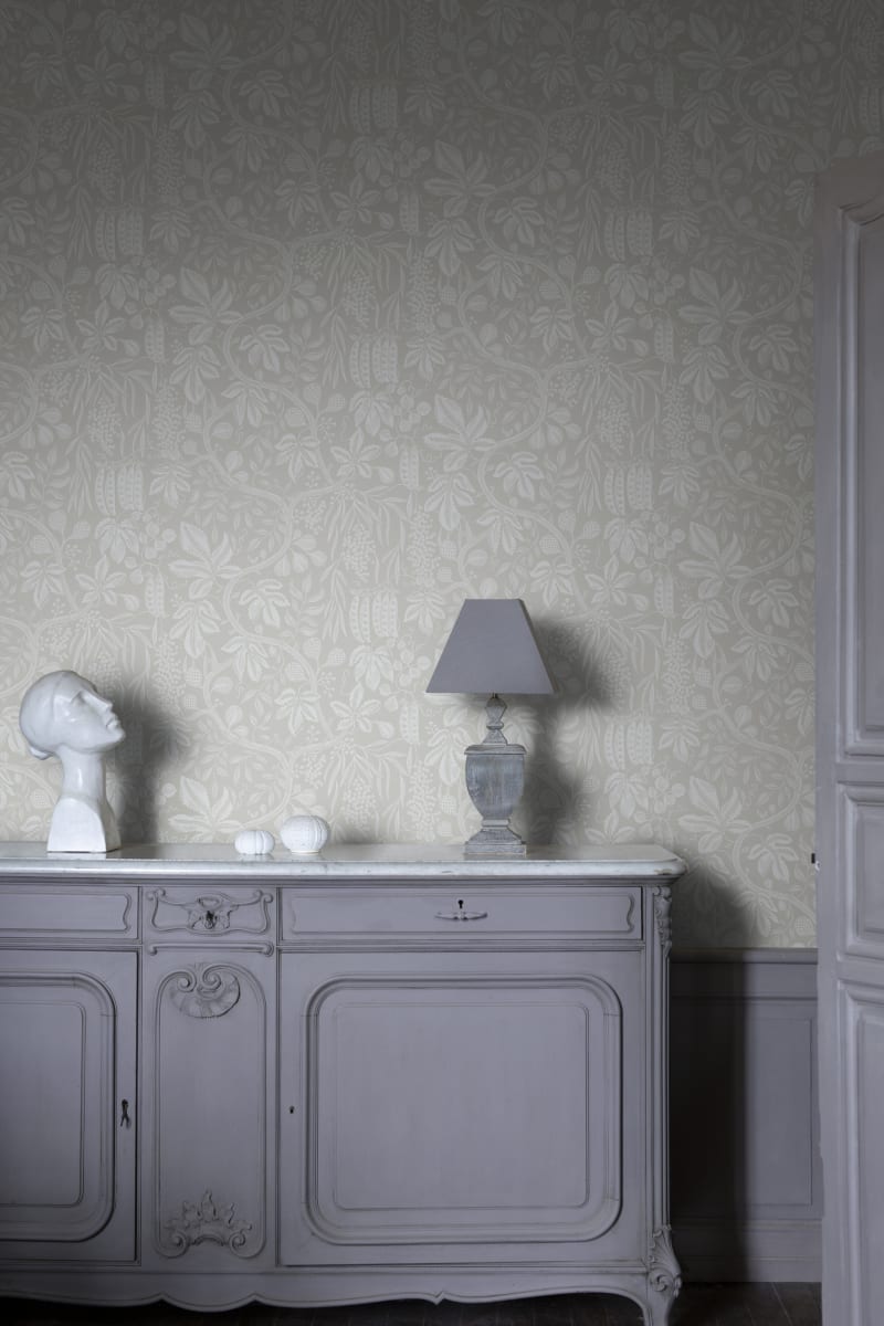 Dacă ai fi putut să intri în bucătăria castelului la sfârșitul verii, te-ai fi întâlnit cu aroma divină a gemului de smochine care clocotește în oale de cupru pe aragaz. Pe măsură ce soarele scaldă livada, o mulțime de smochine înroșite devin grase și dulci, destinate gemului sau, pur și simplu, mâncate direct din copac. Acest design surprinde deliciile grădinii de legume și ale livezii: smochine, struguri și mazăre reunite într-un tribut adus abundenței anotimpurilor. Varianta Sandstone vine in nuanțe de culoarea nisipului.