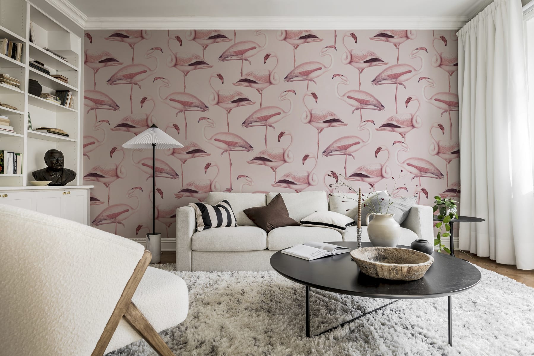 Flamingos, Bubblegum – simbolul decorului șic și jucăuș care promite să ridice farmecul interioarelor tale. Acest model de tapet se mândrește cu un motiv fascinant cu numeroase păsări flamingo roz, fiecare având o poziție unică pe un fundal roz deschis. Tapetul nostru Flamingos, Bubblegum este mai mult decât o alegere de design; este o declarație de stil. Este perfect pentru a adăuga un plus de culoare și personalitate dormitoarelor, băilor sau camerelor de zi.