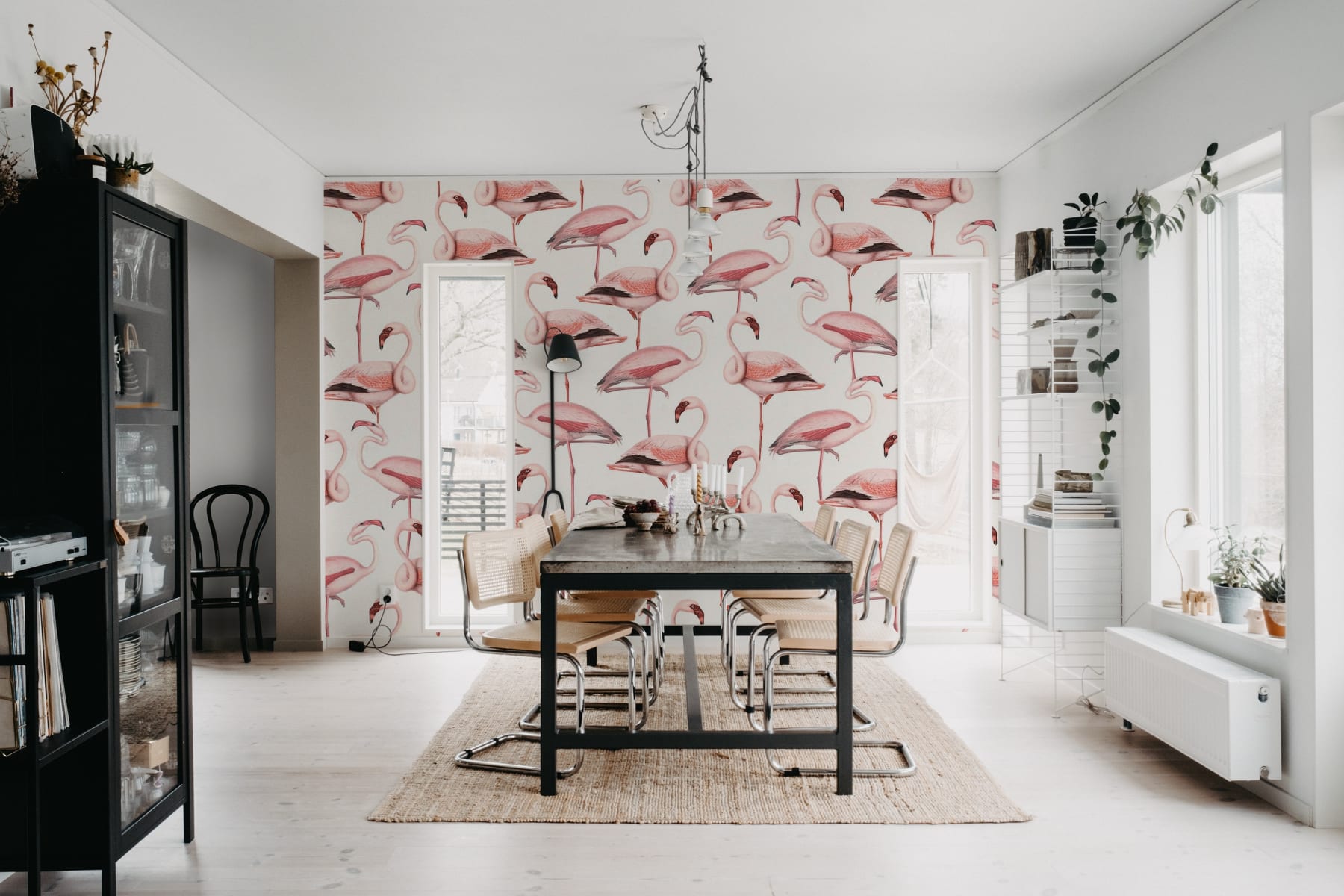 Flamingos, Soft Pink – simbolul decorului șic și jucăuș care promite să ridice farmecul interioarelor tale. Acest model de tapet se mândrește cu un motiv fascinant cu numeroase păsări flamingo roz, fiecare având o poziție unică pe un fundal roz deschis. Tapetul nostru Flamingos, Soft Pink este mai mult decât o alegere de design; este o declarație de stil. Este perfect pentru a adăuga un plus de culoare și personalitate dormitoarelor, băilor sau camerelor de zi.