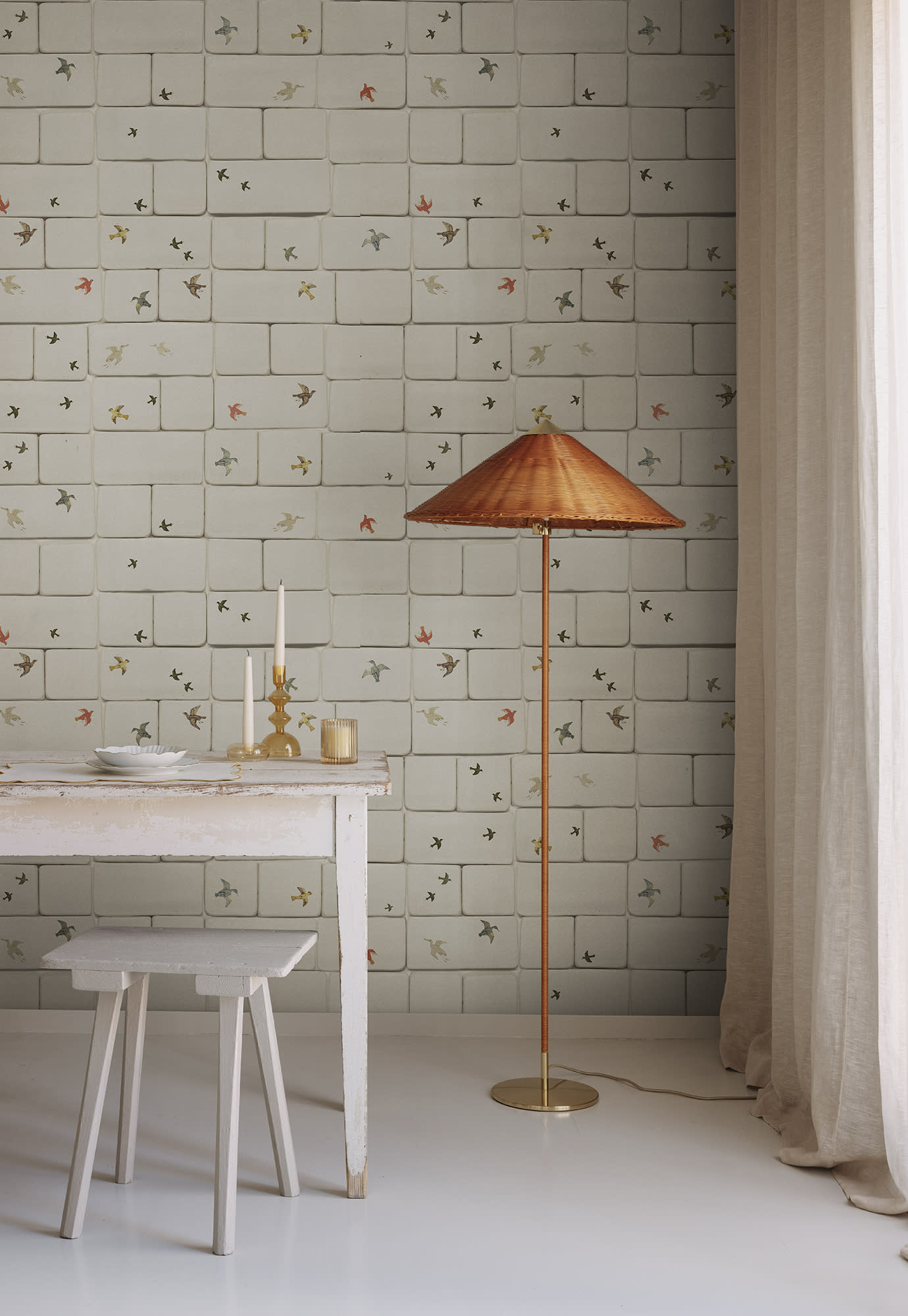 Plăcile făcute manual conferă acestui tapet fermecător o aparență și o senzație autentică, evidențiind frumusețea în imperfecțiune. Varianta Multi are un fundal șic de culoare bej decorat cu păsări multicolore capturate în zbor, formând un model organic uimitor.